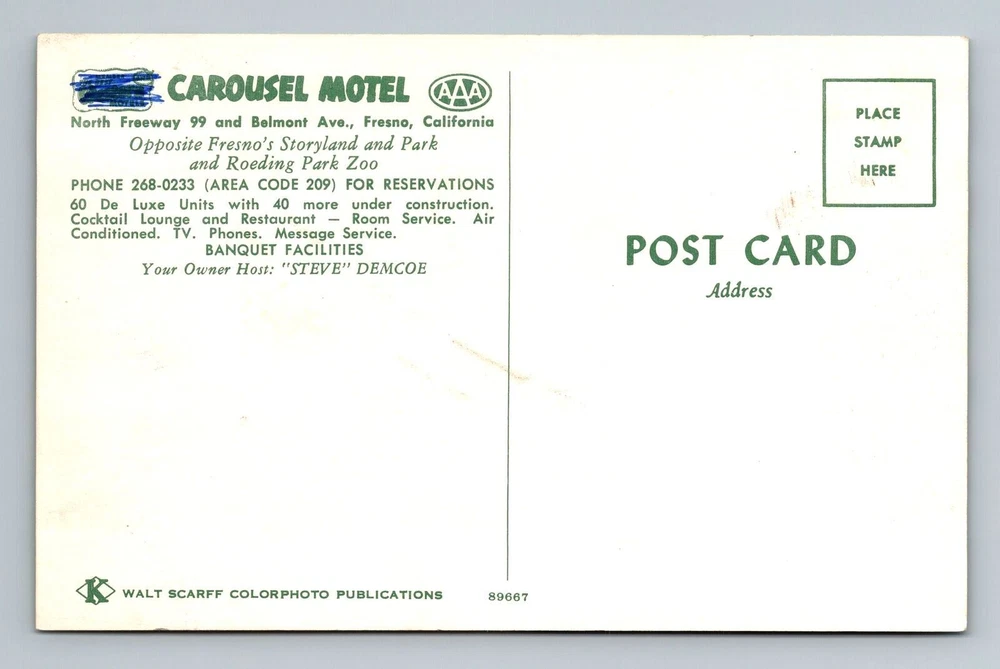 Fresno CA-California, Carousel Motel, Scenic View, Vintage Postcard