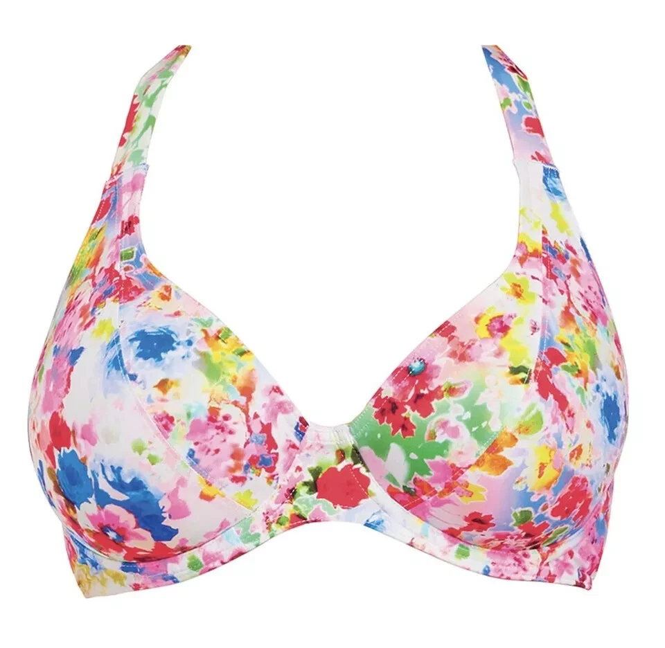 FREYA ENDLESS SUMMER BIKINI TOP BRAND NEW WITHOUT TAGS UNDERWIRED UNPADDED BANDED HALTER NECK TIE UP NECK STRAPS BACK CLASP FASTENER CONFETTI WHITE MULTICOLOURED FLORAL PRINT SIZE 30F - PRODUCT CODE 2966 Payment Please choose your preferred method of payment at checkout With auctions sales please make payment within 7 days or I reserve the right cancel & re-list the item & open a non-paying bidder case so I can re-claim my selling fees Shipping Orders are usually shipped within 1 day of receiving cleared funds and will be sent via Royal Mail or Hermes depending on the package size. You can buy a quicker service from the drop down at checkout. All packages are scanned in on delivery so all items are completely tracked, Please check my listing for any holiday messages, as when away posting will be delayed Returns If you wish to return your item, please open a return case & you'll be provided with address. P lease note: buyer is responsible for postage costs. All goods are checked t horoughly before sending, so I can be sure your item will be in described condition