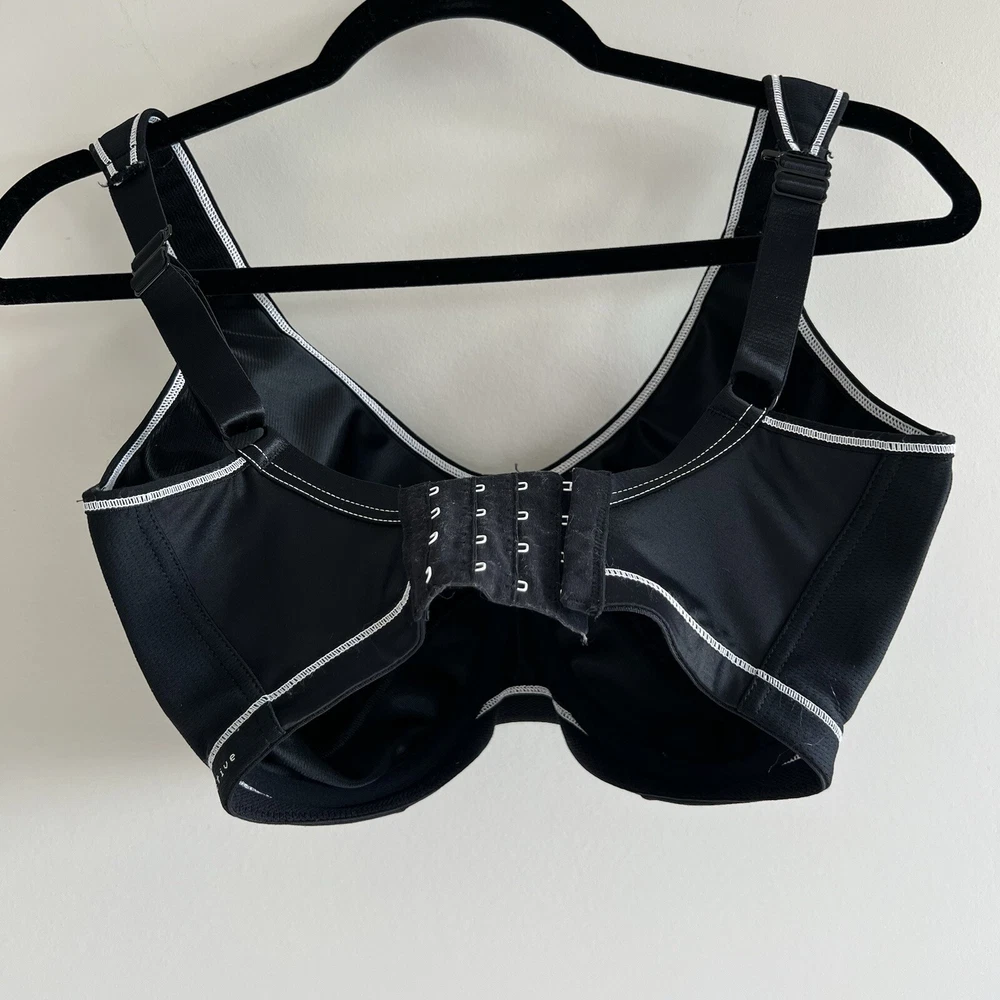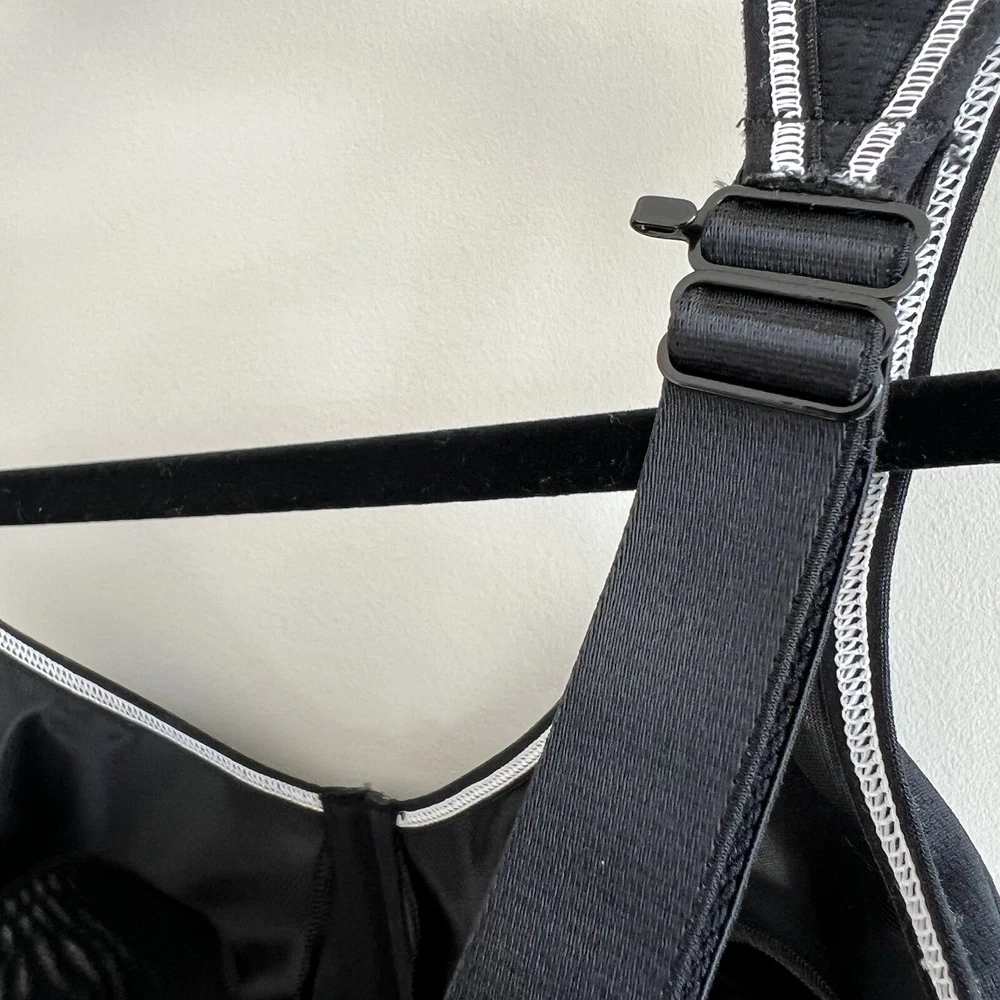 Freya moulded sonic adjustable convertible sports bra black white size 32K Workout in confidence with Freya Active's Sonic Moulded Sports Bra in a versatile Storm colourway. Showcasing moulded cups in a breathable spacer fabric, the specially designed sports bra features mesh panels, built up padded straps and a firm bottom band for good anchorage, comfort and support. While an additional J-hook enables racerback styling Features & Benefits Designed for low intensity sports Breathable spacer moulded cups Wide curvature wires for a supportive fit Mesh panels for cool comfort Firm banding for anchorage Adjustable straps with J-hook fastening for a racer back option Soft hook and eye Firm-rated support