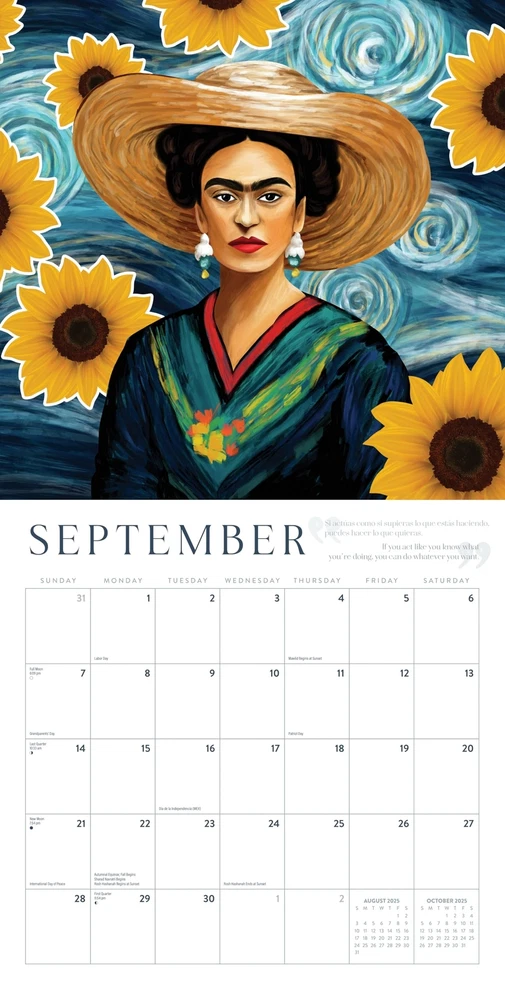 Frida Kahlo Calendar 2025 | Art Portraits Wall Calendar | 12" x 24" | Marble City Press | Hand-Drawn Mexican Folk Art Portraits with Real Quotes from Frida in Spanish and English 2025 Frida Kahlo wall calendar Printed on durable, premium art paper Full 12-month calendar January 2025 - December 2025 12” x 12” wall calendar (12” x 24” open) Includes US and Canadian holidays, moon phases, and important observances of major world religions 2025 Frida Kahlo wall calendar Printed on durable, premium art paper Full 12-month calendar January 2025 - December 2025 12” x 12” wall calendar (12” x 24” open) Includes US and Canadian holidays, moon phases, and important observances of major world religions Shipping from the USA All of our products are shipped from the USA, ensuring quick delivery to your destination. Payment We offer the following payment methods: PayPal, credit card, bank transfer, and eBay's secure payment system. Free Shipping & Free Returns Shipping within the USA is FREE. Additionally, any return is absolutely free for you. Risk-Free Purchase You have the option to return an item within 30 days without any justification. We cover the return shipping costs! Fast Shipping We ship immediately upon receipt of payment. Generally, the package is delivered within 2-3 days in the USA. If it takes longer, we will contact you. Quality and Costs Made in Europe, USA, China No customs fees or additional charges Total satisfaction guarantee Invoice with declared VAT available upon request in .pdf format Feedback Your feedback is very important to us. After you pay for your purchase, you will automatically receive positive feedback from us.