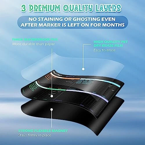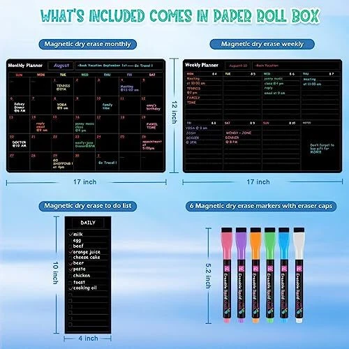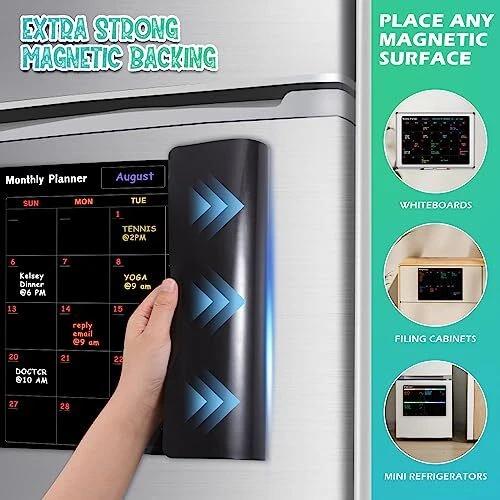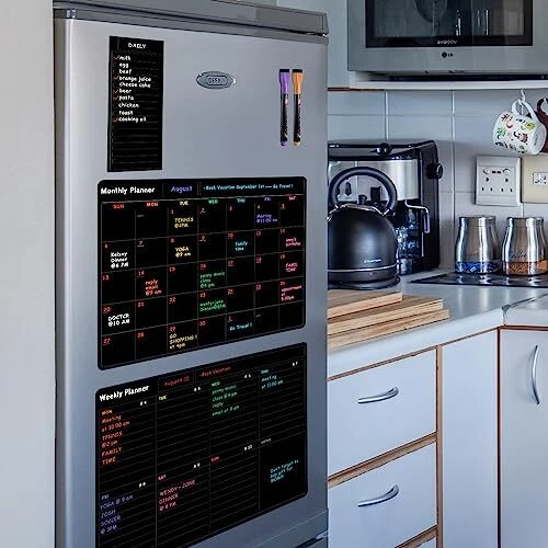 Fridge Black Whiteboard Calendar Set(3-Pack),1 Pcs Magnetic Monthly+weekly