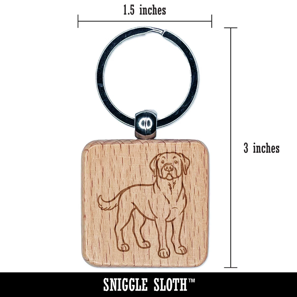 Friendly Labrador Retriever Pet Dog Engraved Wood Square Keychain Tag Charm