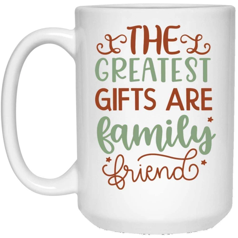 Friends Coffee Mug The Greatest Gifts Are Family Friends Coffee Mugs Gift Product Details.. This high quality 11oz. ceramic white mug has a premium hard coat that provides crisp and vibrant color reproduction sure to last for years. Perfect for all hot & cold beverages. The highest quality printing possible is used. It will never fade no matter how many times you wash it. Material: 100% Ceramic. Print both sides. Dishwasher and Microwave Safe. High Gloss + Premium White Finish. Printed in the U.S.A. Personalized & Custom. We support personalized and custom mug to add custom, when placing an order, you can add notes to the "order note" in shipping address section. Also you can contact us directly via message. Shipping Info. Ready to ship in 1 to 2 business days, All products are made-to-order and proudly printed in the United States. Shipped by USPS and DHL, You will receive your order in 5-7 days. Replace & Refund. All products are defective during shipping broken, chipped will be replaced free of charge. You are not satisfied with the product, we will refund 100% money to you. If any other issues arise, please do not hesitate to message, we would be more than happy to assist you.