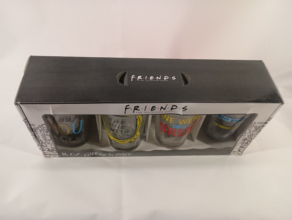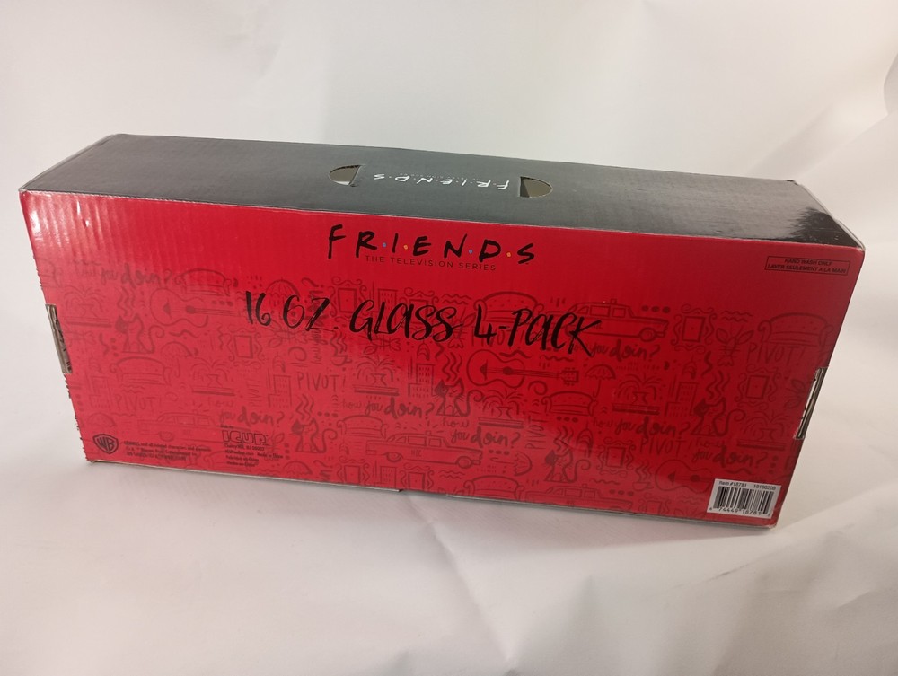 Item Width: 3.25" Item Height: 6 in Personalize: No Country/Region of Manufacture: China Theme: TV & Celebrities, Tv Type: Drinking Glass Glassware Type: Glassware Set Material: Glass Service For: 4 Color: Multicolor Brand: Unbranded Number of Items in Set: Four-Piece Set Includes: Glassware Set Character Family: Friends Occasion: All Occasions Department: Teens Model: Friends The Television Series