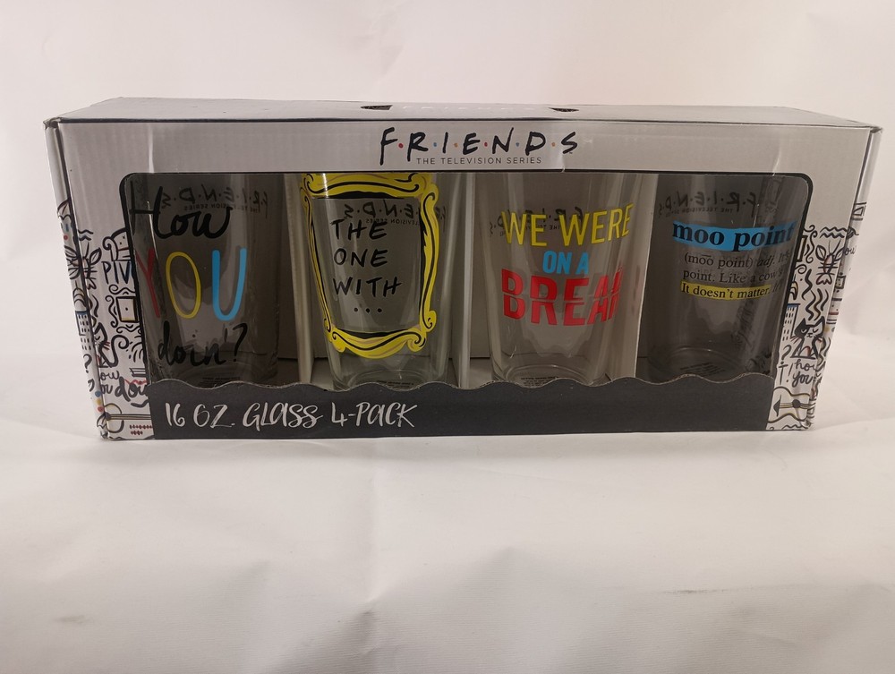 Friends TV Show 16oz Glass Tumbler Set of 4 Funny Drinkware