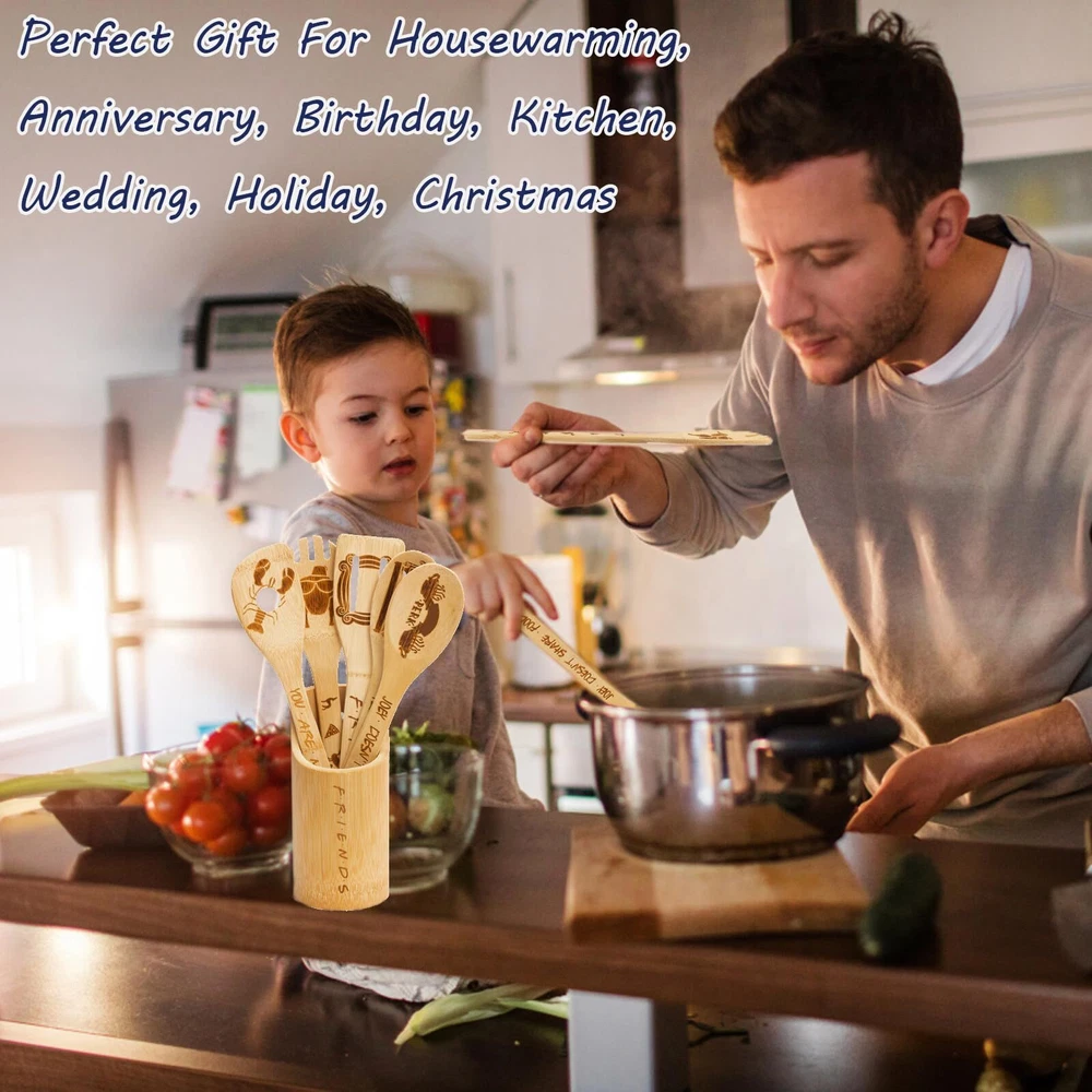 Friends Wooden Spoons for Cooking, 6 Piece Kitchen Utensils Set with Holder, Gifts for Fans, TV Show Merchandise, Non-Stick, Housewarming Birthday Present for Friend/Mom/Women Friends Fans Will Love - This Friends inspired wooden spoons set is a great gift idea for just about any occasion and Friends fan or Inner Geek in your life. They will be the best gift idea for Friends fans and also makes a great gift or keep it for yourself! Friends Perfect Gift - Package includes 5pcs Friends themed wooden spoons, a friends wooden holder to keep your utensils. Friends themed delicate designs, each wooden spoon featuring lobster, turkey, sofa, peephole frame and other famous patterns or quotes from the tv show, this friend spoons brings a little more character into your kitchen. Multifunctional Kitchen Set - These wood spoons kit includes 5 utensils with different functions, a slotted spoon, a solid Spoon, a slotted turner spatula, a single hole spatula, a fork spoon. There is a hole on the end for easy hanging. You can use these cookware for high-temperature frying, baking, flipping, mixing, fit for your different cooking methods. Unique Gifts Idea - Makes the perfect gift for housewarming, anniversary, birthday, mom, kitchen, weddings, holiday, christmas. Have a perfect gift for someone you love, such as your best friend, family members, coworker, and expressing thanks to someone. Premium Quality Materials - The spoon made of high-quality thick bamboo, lightweight, durable, moisture-proof. You don't have to worry that it scratches or damages your pots and pans, you only needs to be washed with water, then wiped or hung to dry naturally. Don't put it in the dishwasher. Shipping We offer FREE shipping on all orders! We ship within Three business days of payment, usually sooner. We use a selection of shipping services such as UPS, FedEx, USPS etc. We only ship to the lower 48 states, no APO/FPO addresses or PO Boxes allowed. Local pickups and combined shipping options are not provided at this time. Return You can return a product for up to 30 days from the date you purchased it. Any product you return must be in the same condition you received it and in the original packaging. Please keep the receipt. Payment We accept payment by any of the following methods: PayPal Please pay as soon as possible after winning an auction, as that will allow us to post your item to you sooner! Feedback Customer satisfaction is very important to us. If you have any problem with your order, please contact us and we will do our best to make you satisfied. Contact Us If you have any queries, please contact us via ebay. We usually respond within 24 hours on weekdays. Please visit our eBay store to check out other items for sale! Thank you for shopping at our store.