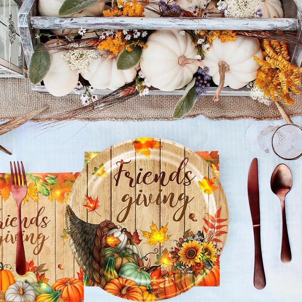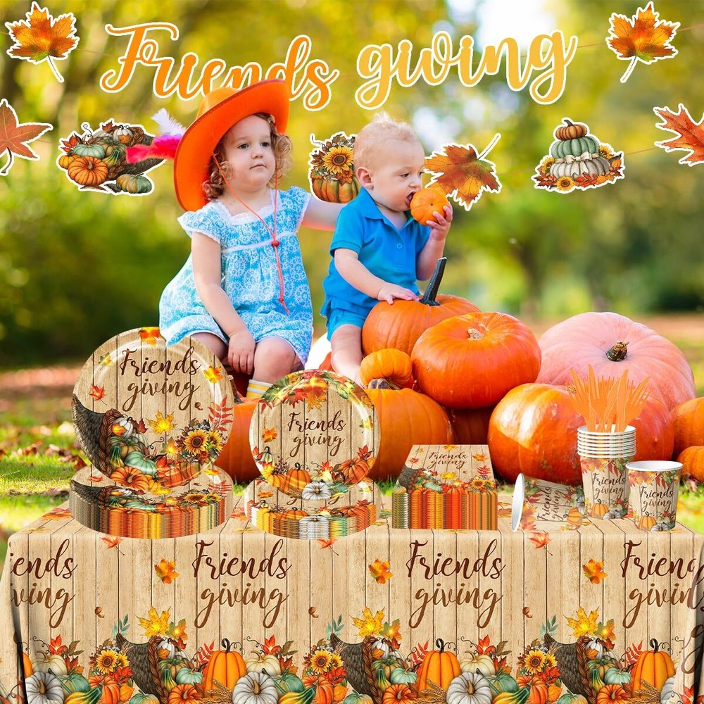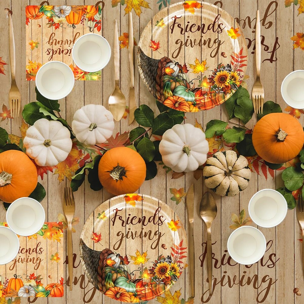 Friendsgiving Party Decorations Kit - 142pcs Fall Plates and Napkins Set for Thanksgiving Gatherings