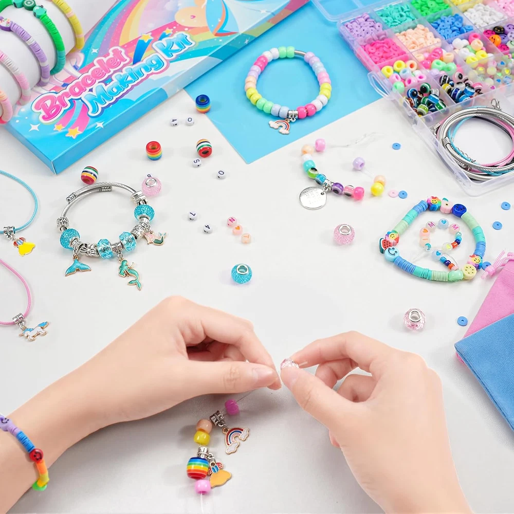 【Easter Basket Stuffers for Kids】ZOOI this art kit is designed for girls aged 6-12 years old and is very suitable for use as clip-on jewelry, pendants, earrings, bracelets and necklace pendants. It contains beads of various styles and colors, which can unleash your imagination and creativity with your children and spend a happy parent-child time 【Easter Gifts for Kids】This kit includes a total of 12 colors clay beads, various pony beads, charm beads and strings, letter beads, luminous beads, devil eye beads, etc. Various types of beads can be matched in endless ways, making it a great gift for girls who like DIY accessories. 【Easter Basket Essentials】 Girls can make personalized fashion bracelets according to different occasions and moods. This is a very good way to express personality and friendship. You can make DIY bracelets for friends and family and give them to express friendship and gratitude. 【Art Supplies for Girls Ages 8-12】The art kit provides a variety of different styles of ornaments, beautifully crafted, sturdy and durable, with 3 necklaces, 2 bracelets, and a bundle of 10m long elastic ropes. You only need to select beads and accessories to thread into the elastic ropes, bracelets and necklaces to make beautiful bracelets and necklaces 【Teen Girl Gifts】The DIY jewelry making set comes with an exquisite unicorn gift box, which is very suitable as a birthday, Christmas gift, Children's Day or New Year gift for girls. It is not only interesting but also can exercise children's concentration. It is a perfect choice for girls' gifts Product Description ZOOI Best Gifts for Girls – Bracelet Making Kit Including Various Styles of Colorful Clay Beads to Meet Your Needs You can make bracelets and pendants of different styles and colors to match different clothes and make you feel happy Let you and your children enjoy a happy parent-child time and enhance your relationship