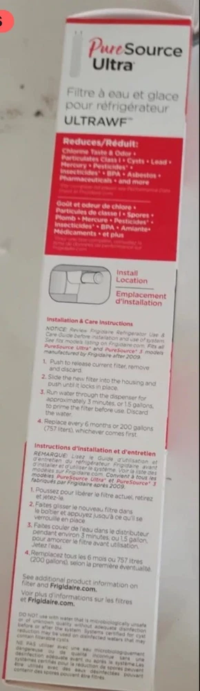 This Frigidaire Pure Source Ultra Water & Ice Refrigerator Filter ULTRAWF is a high-quality filter that is compatible with Aqua Optima and Frigidaire brands. It is made of durable plastic material and features a 1-stage filtration system with carbon block and charcoal methods that help remove chlorine taste and odor from water. With a capacity of 5.3 ft, this water filter is suitable for both commercial and household use. It is easy to install and maintain, with an item height of 3.9 inches, item width of 2.4 inches, and item weight of 1lb. This water filter comes in a pack of one, and it is a great addition to your kitchen appliances for water purification and soda making.