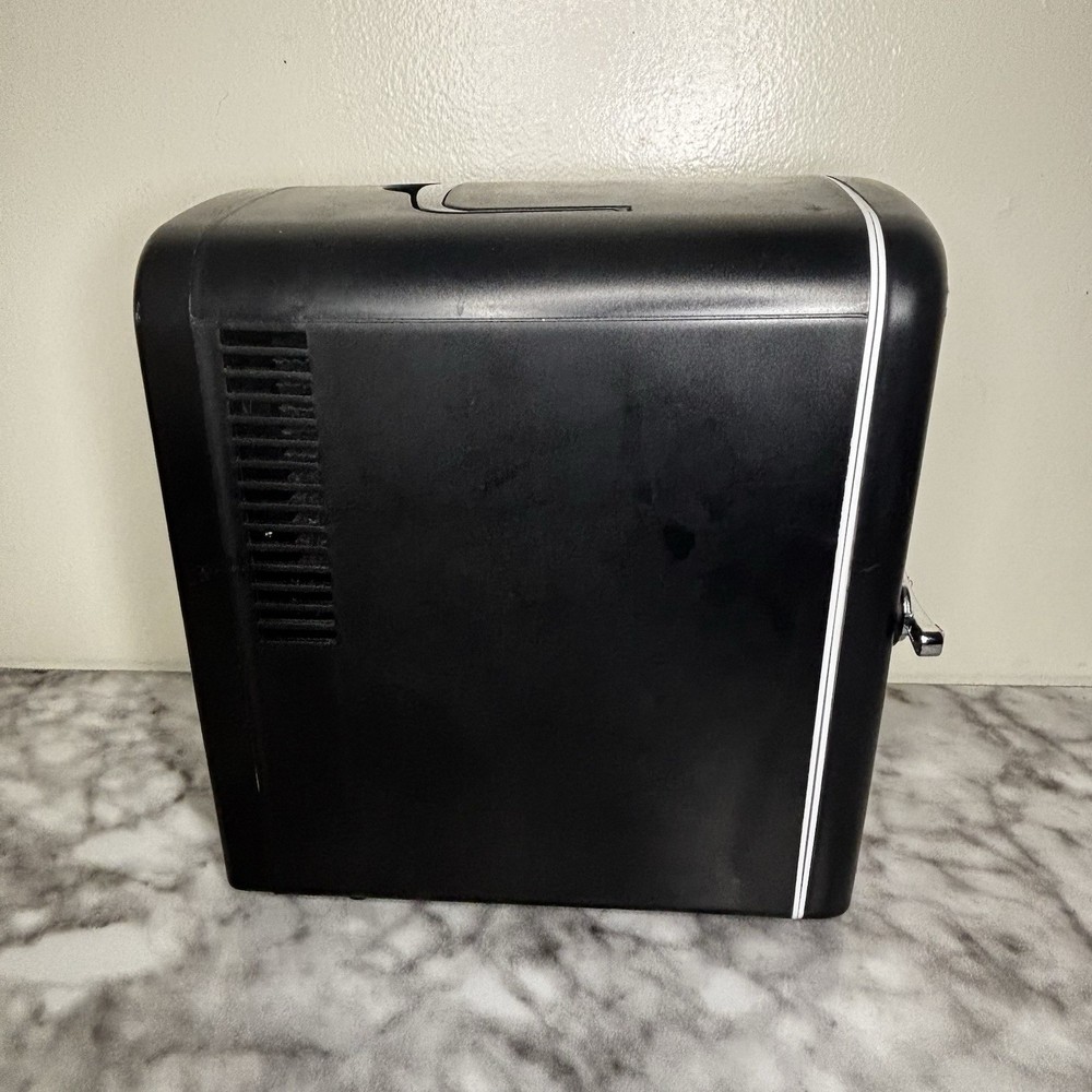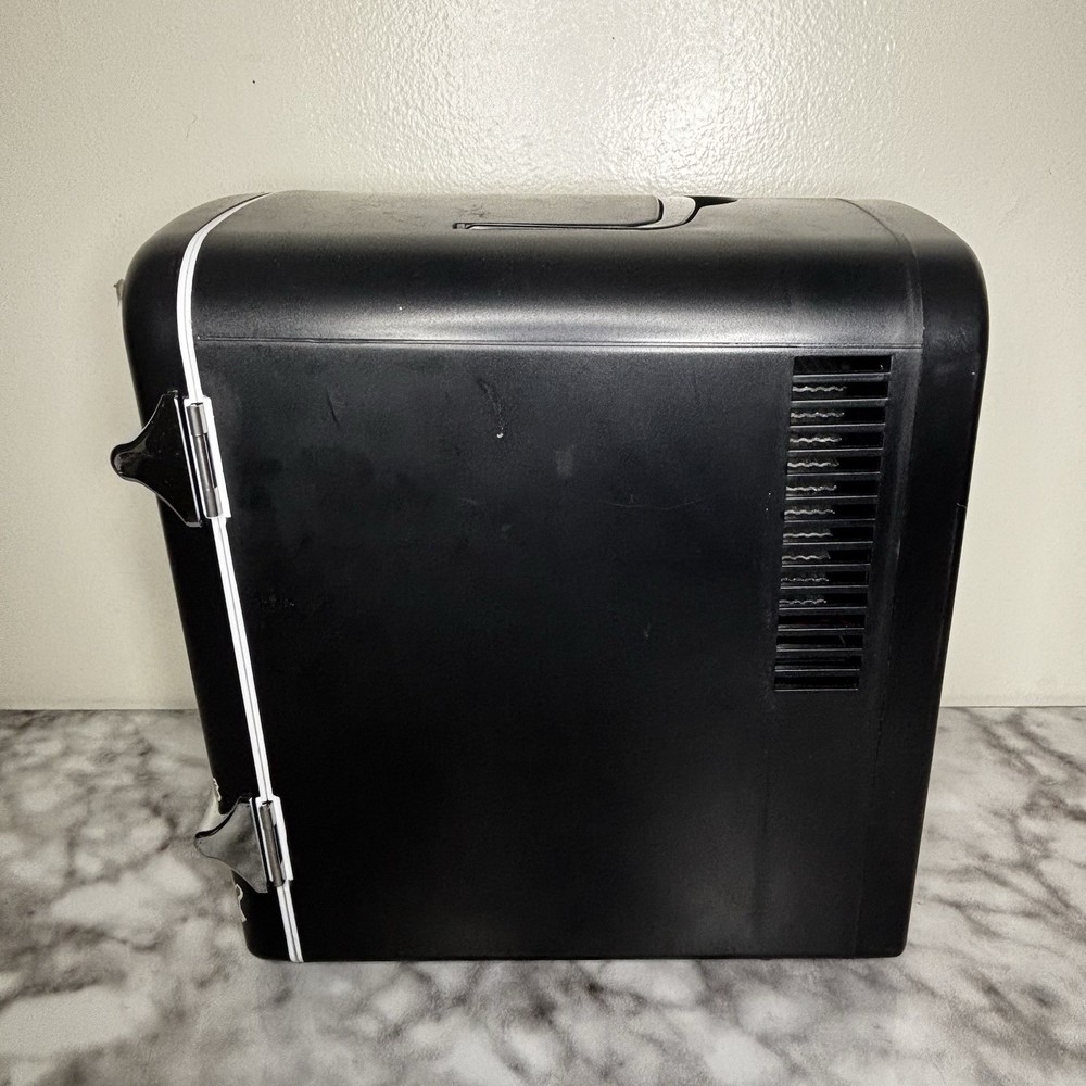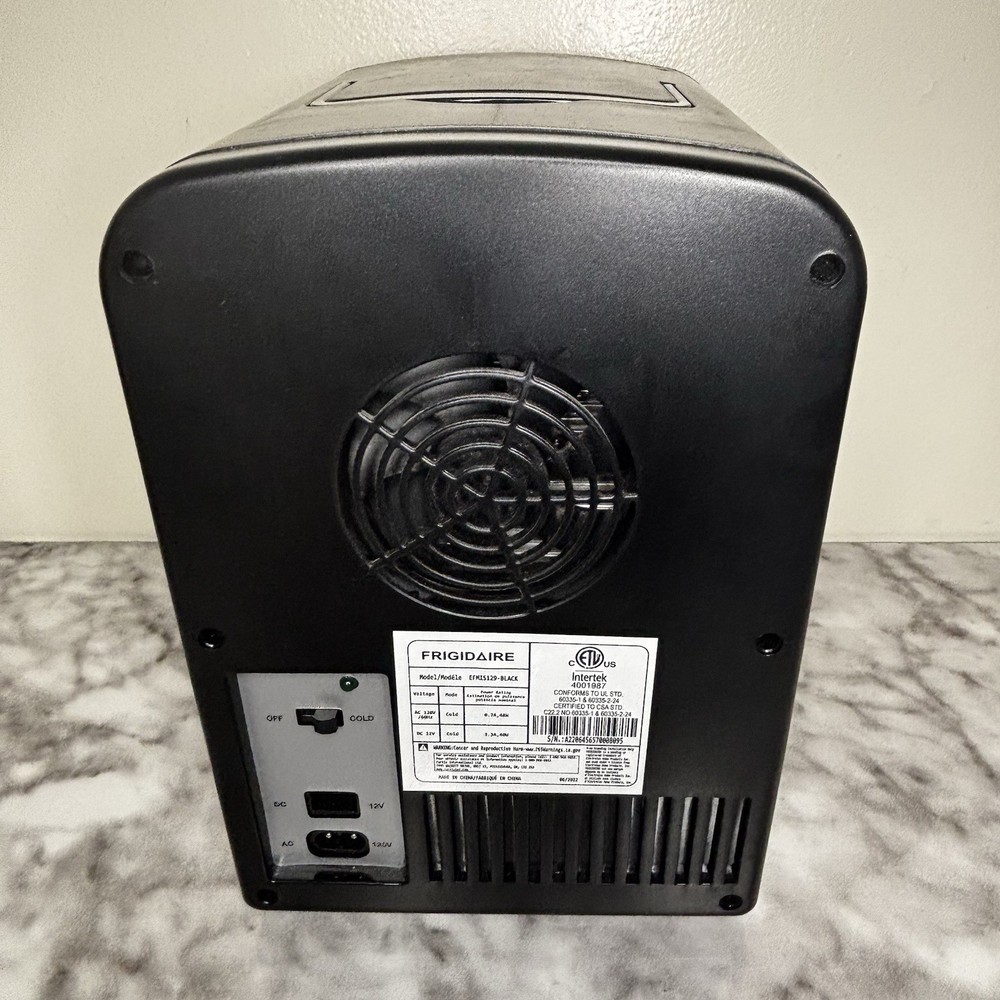 The Frigidaire Black Silver White Mini Fridge Retro Portable WITHOUT Cord is a stylish and compact portable fridge perfect for a countertop installation. With a single door and a capacity of 9 cans, this retro-style fridge features manual defrost, freezer compartment, and runs quietly with a sound rating below 25 dB. The compact size of less than 15 inches in height and 10 inches in width makes it convenient for small spaces. The frost-free feature and color combination of black and silver make it a practical and aesthetically pleasing addition to any room.