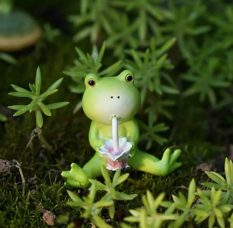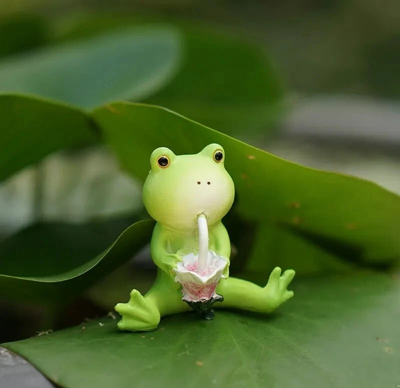 Frog Drinking Miniature Fairy Garden Statue Resin Small Figurine Home Decor Gift