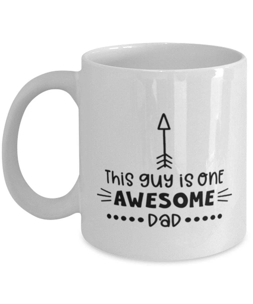 From Daughter Son Funny Coffee Mug This Guy Is An Awesome Dad New Dad Mug Dad Product Details.. This high quality 11oz. ceramic white mug has a premium hard coat that provides crisp and vibrant color reproduction sure to last for years. Perfect for all hot & cold beverages. The highest quality printing possible is used. It will never fade no matter how many times you wash it. Material: 100% Ceramic. Print both sides. Dishwasher and Microwave Safe. High Gloss + Premium White Finish. Printed in the U.S.A. Personalized & Custom. We support personalized and custom mug to add custom, when placing an order, you can add notes to the "order note" in shipping address section. Also you can contact us directly via message. Shipping Info. Ready to ship in 1 to 2 business days, All products are made-to-order and proudly printed in the United States. Shipped by USPS and DHL, You will receive your order in 5-7 days. Replace & Refund. All products are defective during shipping broken, chipped will be replaced free of charge. You are not satisfied with the product, we will refund 100% money to you. If any other issues arise, please do not hesitate to message, we would be more than happy to assist you.