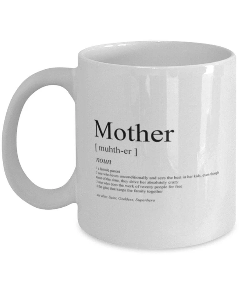 From Family Funny Coffee Mug Mother Definition Mug Mothers Day Gift Mom Product Details.. This high quality 11oz. ceramic white mug has a premium hard coat that provides crisp and vibrant color reproduction sure to last for years. Perfect for all hot & cold beverages. The highest quality printing possible is used. It will never fade no matter how many times you wash it. Material: 100% Ceramic. Print both sides. Dishwasher and Microwave Safe. High Gloss + Premium White Finish. Printed in the U.S.A. Personalized & Custom. We support personalized and custom mug to add custom, when placing an order, you can add notes to the "order note" in shipping address section. Also you can contact us directly via message. Shipping Info. Ready to ship in 1 to 2 business days, All products are made-to-order and proudly printed in the United States. Shipped by USPS and DHL, You will receive your order in 5-7 days. Replace & Refund. All products are defective during shipping broken, chipped will be replaced free of charge. You are not satisfied with the product, we will refund 100% money to you. If any other issues arise, please do not hesitate to message, we would be more than happy to assist you.