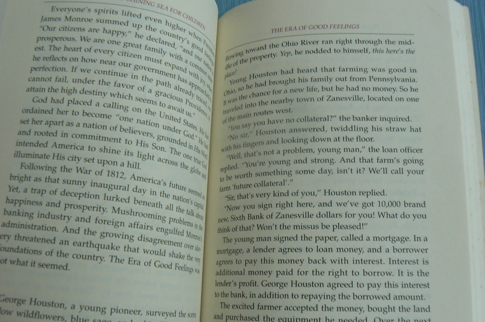 This listing is for a resource from Revell that is titled From Sea to Shining Sea - for Children Discovering God's Plan for America in Her First Half-Century of Independence, 1787-1837 by Peter Marshall & David Manuel with Anna Wison Fishel Synopsis from the back of the book: " ...tells America's story during its first fifty years. These were the days of Benjamin Franklin and Daniel Boone, Francis Asbury and Charles Finney, Andrew Jackson and Sam Houston. During these years Conestoga wagons and circuit riders became famous, Indian wars and slavery were major concerns, and theLouisiana Purchase and the Oregon Trail expanded American boundaries from sea to shining sea. But God was also at work in the young nation, giving its settlers exciting opportunities to shape its history and to be His people. "This book, written primarily for young people in the middle grades, includes study questions for each chapter and helps its readers see God's part in American history." This 208-page softcover is in very nice condition with all pages crisp, clean, and sturdily bound; the laminated cover has a few "wrinkles". I'm listing MANY more books (and other items) and I'm happy to combine shipping. I normally mail ON the day I receive payment if it's received before 1 p.m. central time, and the next day if it's later than 1. ~~~~~~~~~~~~~~~~~~~~~ Please take a look at my other offerings; I'm listing MANY school books (and others) and I'm happy to combine shipping. All items from a smoke-free, pet-free home. Thanks so much for your time!