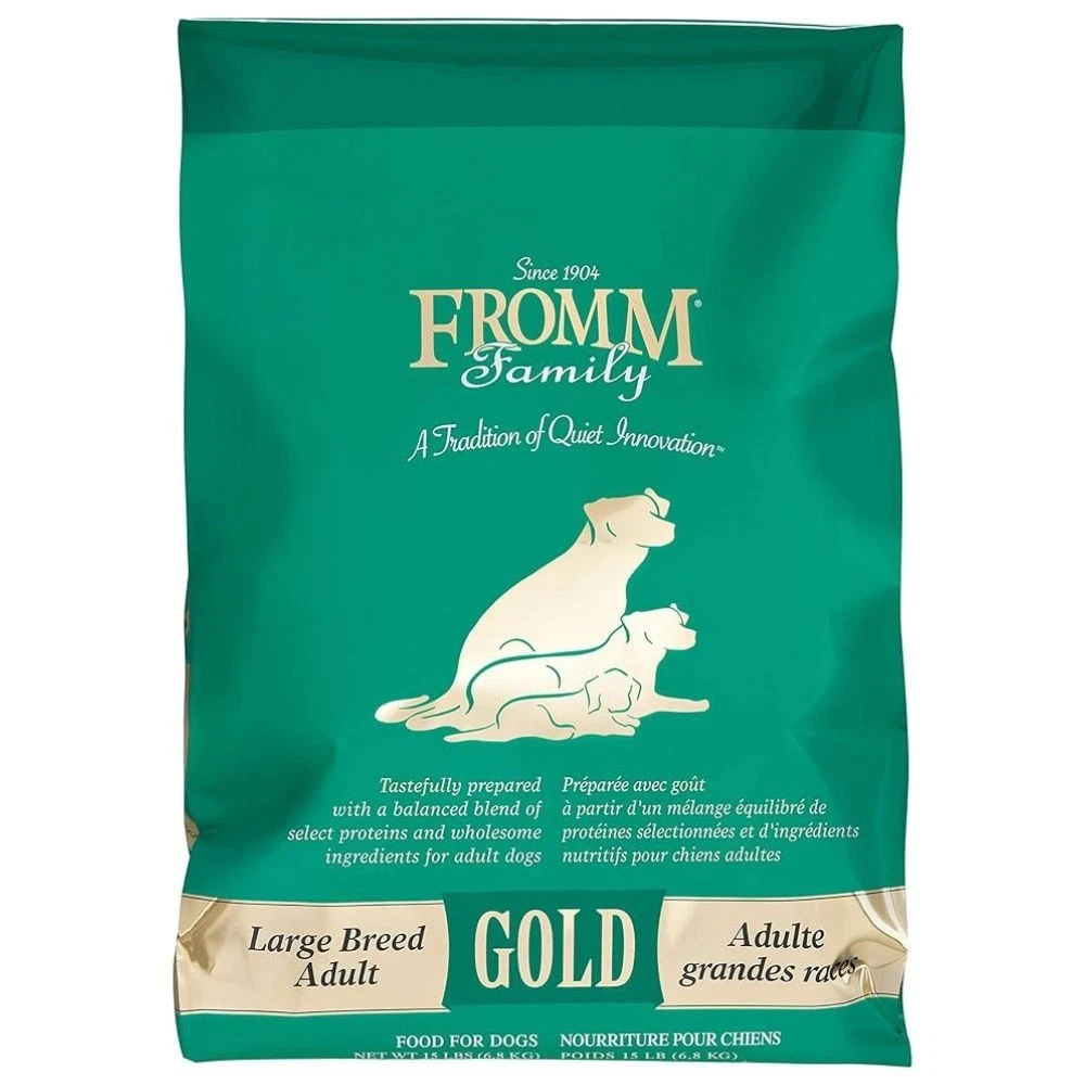 πΆ Fromm Gold Large Breed Adult Dry Dog Food β Chicken Recipe Built for big dogs with big needs! Fromm Gold Large Breed Adult is specially formulated for adult large-breed dogs (50+ lbs) , featuring high-quality chicken, wholesome grains, and added probiotics to support strong bodies and healthy digestion. π Chicken Protein β Supports lean muscle & everyday energy 𦴠Large-Breed Support β Crafted for adult dogs 50+ lbs 𧬠Probiotics Included β Helps digestion & nutrient absorption π‘οΈ Quality & Safety β Third-party pathogenic bacteria testing πΎ With Grain β No corn, wheat, soy β’ Pea-free formula π Guaranteed Analysis πͺ Protein (Min): 23% π§ Fat (Min): 12% πΏ Fiber (Max): 5.5% π§ Moisture (Max): 10% π₯ Calorie Content: 377 kcal per cup π Why Pet Parents Love It π‘ Family-owned & crafted with care β Meets AAFCO nutrition standards for growth & maintenance (including large breeds) π¦ Dry kibble β’ Bag packaging β’ Adult life stage β€οΈ Reliable daily nutrition for Labrador Retrievers, Golden Retrievers, German Shepherds, and other large breeds.