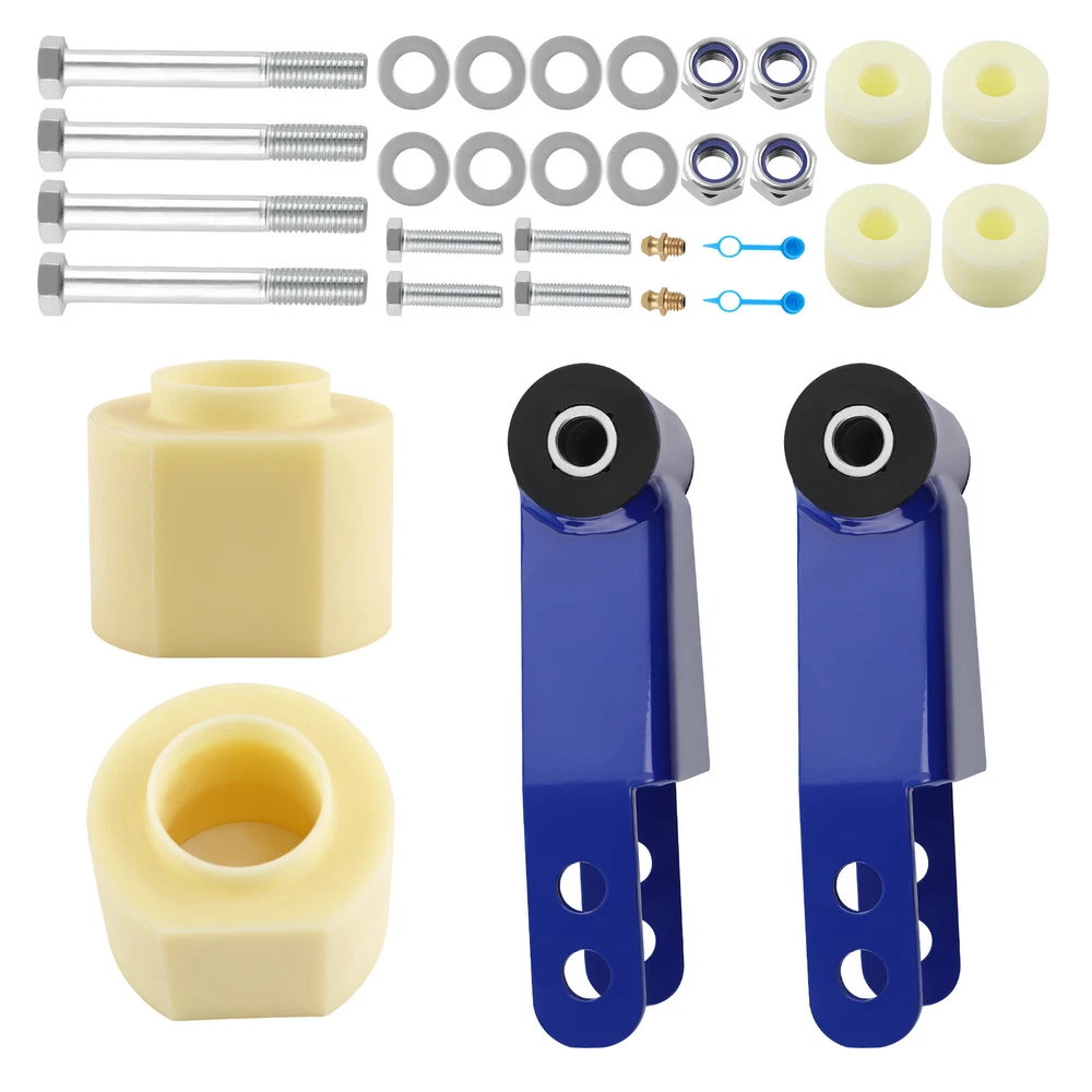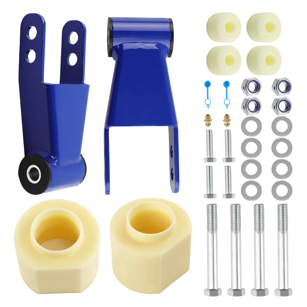 Description: • Can run tires that are 2" above the factory size • front lift thermoplastic and is designed to mount above your bottom spring perch. • This material is designed to withstand all harsh conditions and still provide enough rebound for factory ride quality. • Repositioning the transfer case will help maintain proper driveshaft alignment, prevent driveline wear and eliminate unwanted vibrations increasing ride security. • An alignment is always recommended if you are altering the height of your vehicle. Application: for Jeep Cherokee XJ 2WD/4WD 1984 - 2001 Does NOT fit Cherokee XJ vehicles with welded bump stops. Specification: Lift Height: 3'' front, 2'' rear Material:Steel Place on Vehicle: Left, Right, Front, Rear Package Size:32*22*14 Item Weight:4.7kg Dimension: This kit will allow you to run up to a 30" tire Time Frame: Installs In Approximately 2 - 4 Hours Installation: Perfect for DIY using basic hand tools, no Cutting or Welding required Package Includes: 2x Rear Shackle bracket 2x Fron Lifting pad 4x Transfer Case Drop Spacers 4x Hexagon head bolts M14*2*110 4x Hexagon head bolts M10*1.5*40 Features : *Not only to lift your truck but to improve your ride quality and comfort as well as lifetime use. *Enhance the look of your vehicle and run larger tires *Improves the look of your vehicle and increases ground clearance, allowing you to fit larger custom rims and tires. *Lifts your Car while maintaining factory ride quality *No special tools are required to mount these bolt spacers NOTE: The ratio between lift height and kit thickness is not 1:1, because of suspension geometry. MXR04FXJT
