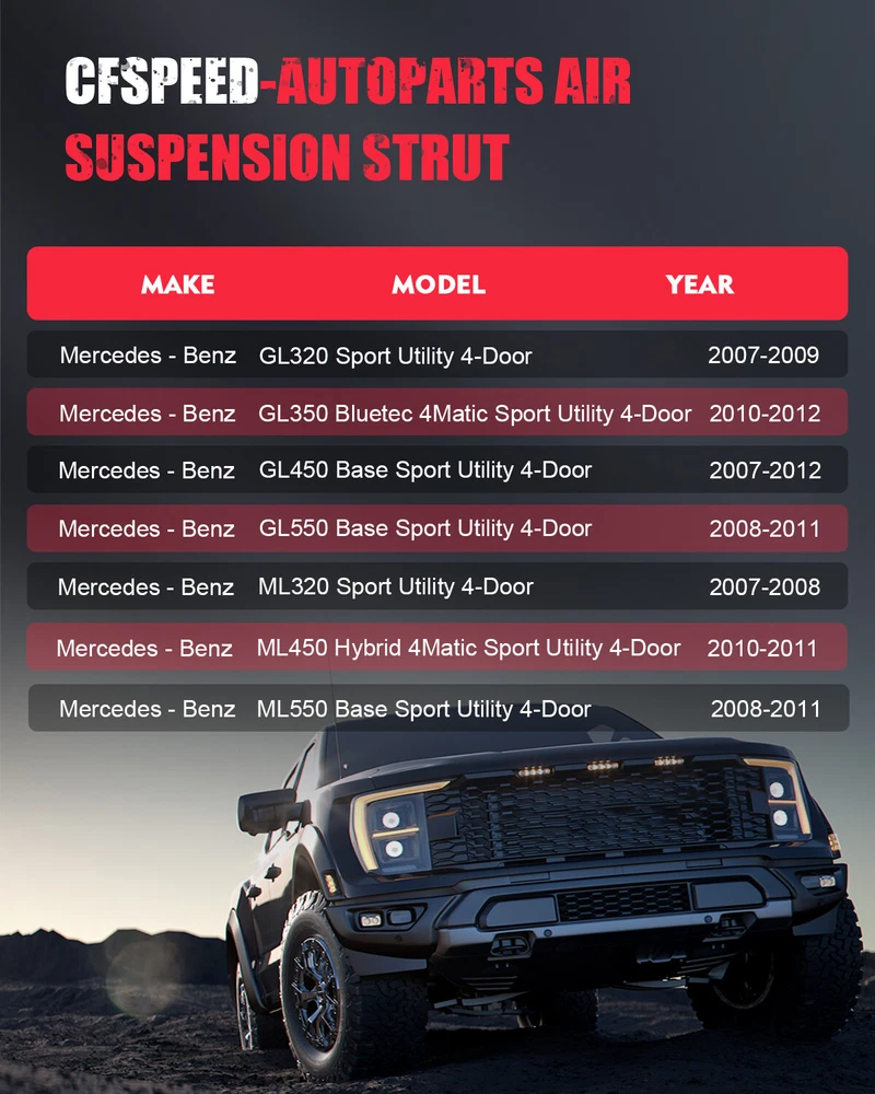 gtin13: Does not apply Brand: cfspeed-autoparts Superseded Part Number: 2513205613, 251320561380 OE Part Number: 2513203013, 251320301380, 2513203113, 251320311380 Lower Mount Type: U-Bracket Fitment Type: Direct Replacement Platform: W251 Quantity: Single Features: Sealed Placement on Vehicle: Left, Right, Front Single Weight(KG): 10.250 Drive Layout: Front Engine RWD & 4WD Size: Single Dimension(CM) 92.50(Length)*17.00(Width)*16.00(Height) Adjustable: Yes Type: Air Suspension Strut UPC: Does not apply Minimum Operating Pressure (psi): 90 Manufacturer Part Number: C11051601APS OE Spec or Performance/Custom: OE Spec Custom Bundle: No Upper Mount Type: Stud Material: Iron, Aluminium Alloy, Rubber Included Hardware: None Maximum Operating Pressure (psi): 195 Interchange Part Number: Air Suspension Shock Strut, Air Ride Shock Strut