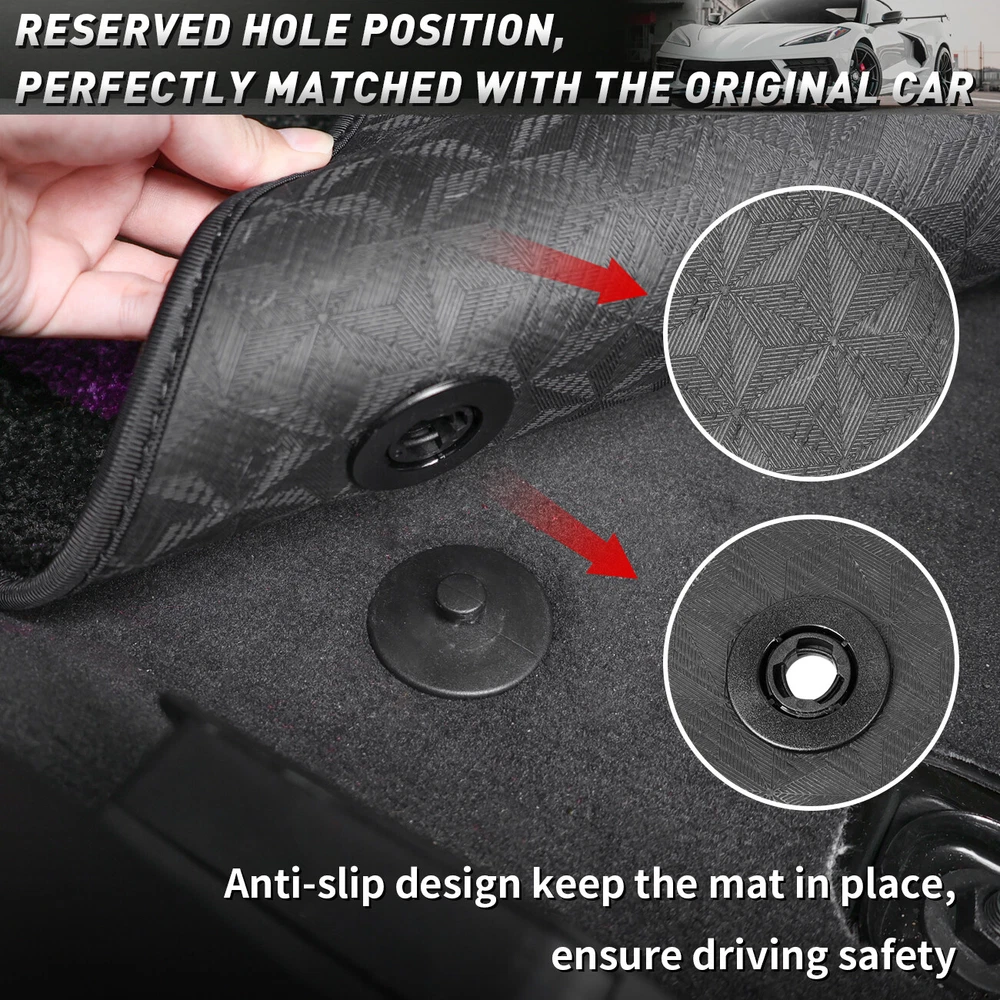 Front Binding Floor Mats All-Weather Carpet Tricolor for Corvette C8 Coupe 2020-2024 Features 【Fitment】These floor pads have been specially designed and cut to fit for Corvette C8 Coupe 2020, 2021, 2022, 2023, 2024, and are easy to install. 【Material】This product boasts a fabric meticulously woven from polypropylene fibers. The backside features a precision-engineered anti-slip texture, providing a secure and steadfast fit, offering you an additional layer of reassurance. 【Function】Harnessing a material technology formula, this product effortlessly constructs a robust waterproof and anti-fouling shield. It effectively repels external moisture and stains, preserving the pristine condition of your car's interior space. 【Features】Adorned with a sumptuous layer of fluff, the surface exudes a sense of luxury and elegance, delighting both the eyes and the touch. This distinctive texture design not only elevates visual appeal but also substantially boosts surface friction, granting the product remarkable anti-slip properties. 【Installation】The carpet is easy to install and remove, perfectly matching the original car. Just replace it directly. No modifications are required. Specification Condition: New Colour: Black Material: Polypropylene Fiber Fitment For Corvette C8 Coupe 2020-2024 Package Included 2X Floor Mats Declaration ⭐ This item is not a licensed Honda/Yamaha/Suzuki/Polaris/Can Am/Kawasaki/Arctic Cat/Jeep/Kymco/John Deere Gator/Bobcat/Mercedes Benz/BMW/Porsche/Toyota/Dodge/Harley Davidson/ product . ⭐ We do not claim ownership and have no affiliation with above-mentioned brands, copyrights and trademarks belong to the respective owners. ⭐ Unless specifically identified as such, our use of third party trademarks does not indicate any relationship, sponsorship, or endorsement between us and above-mentioned brands. ⭐ Any references by us (or company name) (or the seller) to third party trademarks is to identify the corresponding third party's goods and shall be considered nominative fair use under the trademark law. Payment ⭐ We accept credit, debit,discover Visa and PayPal,among other locally accepted forms of payment. ⭐ Please pay as soon as possible after odering , as that we can ship your item to you sooner! ⭐ Refund will be issue back to the account which paid from,please be know that. Delivery details ⭐ We offer FREE shipping on all orders!And offer world wide Shipping . ⭐ We ship within Three business days of payment, usually sooner .(work off on weekend and Holidays). ⭐ Delivery is typically within 8-21 days,the delivery date varies by shipping destinations, and may take a little longer during holiday peak season or encounter force majeure. Returns Accepted ⭐ This product comes with 30-day returns or replacment . ⭐ If the item is be damaged, defective, or not as described in the listing, We will provide you with a replacement or a full refund. ⭐ Any product you return must be in the same condition you received it and in the original packaging. Please keep the receipt. Quality Assurance ⭐ If you are satisfied with our item,could you kindly give us 5 stars feedback?Thanks a lot. ⭐ If there are any problems when you received the package, please feel free to message us, we will definitely give you a satisfying solution , please don't leave neutral or negative feedback without any communication.Thank you for your cooperation! Contact US ⭐ We are manufactuer ,the warehouse was located in US/China ,DO NOT worry about the shipping time. ⭐ Customer satisfaction is very important to us. ⭐ If you meet any question,Please do not hesitate to contact us via eBay message,we will reply you ASAP. ⭐ Our Working Time: 8 pm - 5 am(From Monday to Saturday,Not working on statutory holidays) . QUALITY AUTO PARTS