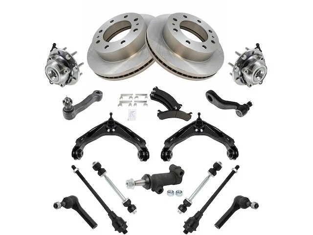 Front Brake Pad Rotor Wheel Hub Control Arm Kit fits Silverado 3500 39NDVW Front Brake Pad Rotor Wheel Hub Control Arm Kit fits Silverado 3500 39NDVW Position: Front Brand: TRQ Brake Pad Rotor Wheel Hub Control Arm Kit Condition: New Product Description Notes: 18 Piece Steering, Suspension, & Brake Kit Features: Replacement Brake Kits Features & Benefits Product Specifications Wheel Lug Count: 8 Lug Package Contents: (2) Front Sway Bar Links; (2) Front Outer Tie Rods; (2) Front Inner Tie Rods; (2) Front Lower Ball Joints; (2) Front Wheel Bearing & Hub Assemblies; (1) Pitman Arm; (1) Idler Arm; (2) Front Upper Control Arms with Ball Joints; (2) Front Brake Rotors; (1) Front Semi-Metallic Brake Pad Set with Contact Point Grease & Hardware; (1) Idler Arm Bracket Assembly Detailed Applications Years Vehicle Sub Model Fitment Notes: with Dual Rear Wheels (DRW) 2001-2006 Chevrolet Silverado 3500 4WD Years Vehicle Sub Model Fitment Notes: with Single Rear Wheels (SRW); RPO Code JH6 (Hydraulic Power 4 Wheel Disc Brakes, 9900lb) 2001-2003 Chevrolet Silverado 3500 4WD Warranty Coverage Policy 12 Month Warranty 30 Day Return Policy Return shipping paid by: Buyer Item must be returned within: 30 Days Refund will be given as: Money Back DO NOT SEND RETURNS BACK WITHOUT A VALID RMA NUMBER If you have an issue after receiving your part, please email us directly through eBay