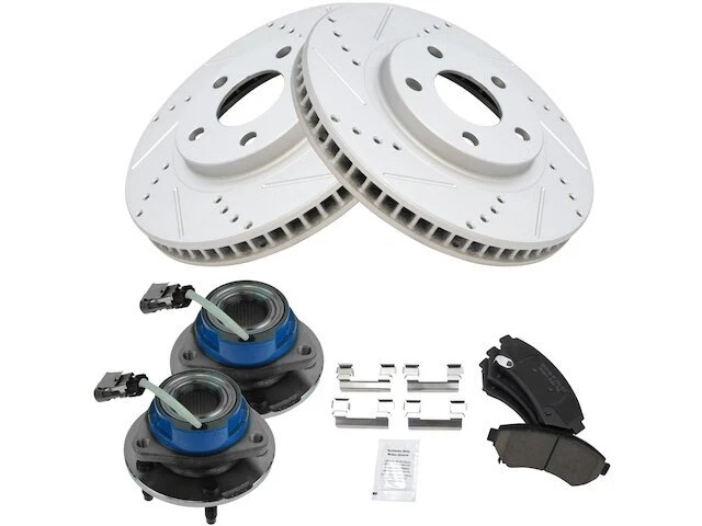 Front Brake Pad and Rotor and Wheel Hub Kit fits Bonneville 2000-2003 48GHPG Front Brake Pad and Rotor and Wheel Hub Kit fits Bonneville 2000-2003 48GHPG Position: Front Brand: TRQ Brake Pad and Rotor and Wheel Hub Kit Condition: New Product Description Notes: Ceramic Performance Brake Pad & Rotor Kit with Wheel Bearings -- with ABS Brakes Features: Ceramic Improved Stopping Power: Cross-drilled slotted to reduce brake fade Longer Lasting: True non-interference vane design for optimized cooling Positive Molded: Less dust resulting in cleaner wheels Multi-Layer Shim: Reduced noise and vibration Direct Replacement: No modifications necessary Product Specifications Wheel Lug Count: 5 Lug Coating: Premium G-Coated Grade Type: Performance Type: Performance Surface Type: Slotted X Drilled Package Contents: (2) Front Wheel Bearing & Hub Assemblies; (1) Front Ceramic Brake Pad Set with Contact Point Grease & Hardware; (2) Front G-Coated Performance Brake Rotors Detailed Applications Years Vehicle Sub Model 2000-2003 Pontiac Bonneville SSEi 2000-2003 Pontiac Bonneville SLE Warranty Coverage Policy 12 Month Warranty 30 Day Return Policy Return shipping paid by: Buyer Item must be returned within: 30 Days Refund will be given as: Money Back DO NOT SEND RETURNS BACK WITHOUT A VALID RMA NUMBER If you have an issue after receiving your part, please email us directly through eBay
