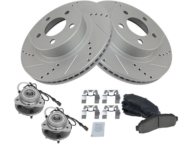 Front Brake Pad and Rotor and Wheel Hub Kit fits Explorer Sport 2001-2002 45BWYB Front Brake Pad and Rotor and Wheel Hub Kit fits Explorer Sport 2001-2002 45BWYB Position: Front Brand: TRQ Brake Pad and Rotor and Wheel Hub Kit Condition: New Product Description Notes: Ceramic Performance Brake Pad & Rotor Kit Features: Ceramic Improved Stopping Power: Cross-drilled slotted to reduce brake fade Longer Lasting: True non-interference vane design for optimized cooling Positive Molded: Less dust resulting in cleaner wheels Multi-Layer Shim: Reduced noise and vibration Direct Replacement: No modifications necessary Product Specifications Coating: Premium G-Coated Grade Type: Performance Type: Performance Surface Type: Slotted X Drilled Package Contents: (2) Front Wheel Bearing & Hub Assemblies; (1) Front Ceramic Brake Pad Set with Contact Point Grease & Hardware; (2) Front G-Coated Performance Brake Rotors Detailed Applications Years Vehicle Sub Model 2001-2002 Ford Explorer Sport 4WD Warranty Coverage Policy 12 Month Warranty 30 Day Return Policy Return shipping paid by: Buyer Item must be returned within: 30 Days Refund will be given as: Money Back DO NOT SEND RETURNS BACK WITHOUT A VALID RMA NUMBER If you have an issue after receiving your part, please email us directly through eBay