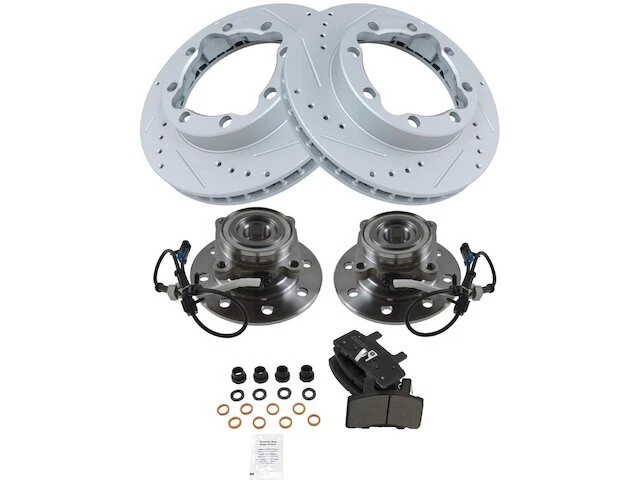 Front Brake Pad and Rotor and Wheel Hub Kit fits K2500 Suburban 1995-1999 76BZNN Front Brake Pad and Rotor and Wheel Hub Kit fits K2500 Suburban 1995-1999 76BZNN Position: Front Brand: TRQ Brake Pad and Rotor and Wheel Hub Kit Condition: New Product Description Notes: Semi-Metallic Performance 4 Piece Brake Pad & Rotor Kit Features: Semi-Metallic Improved Stopping Power: Cross-drilled slotted to reduce brake fade Longer Lasting: True non-interference vane design for optimized cooling Positive Molded: Less dust resulting in cleaner wheels Multi-Layer Shim: Reduced noise and vibration Direct Replacement: No modifications necessary Product Specifications Coating: Premium G-Coated Grade Type: Performance Type: Performance Surface Type: Slotted X Drilled Package Contents: (2) Front Wheel Bearing & Hub Assemblies; (1) Front Semi-Metallic Brake Pad Set with Contact Point Grease & Hardware; (2) Front G-Coated Performance Brake Rotors Detailed Applications Years Vehicle 1995-1999 GMC K2500 Suburban Warranty Coverage Policy 12 Month Warranty 30 Day Return Policy Return shipping paid by: Buyer Item must be returned within: 30 Days Refund will be given as: Money Back DO NOT SEND RETURNS BACK WITHOUT A VALID RMA NUMBER If you have an issue after receiving your part, please email us directly through eBay