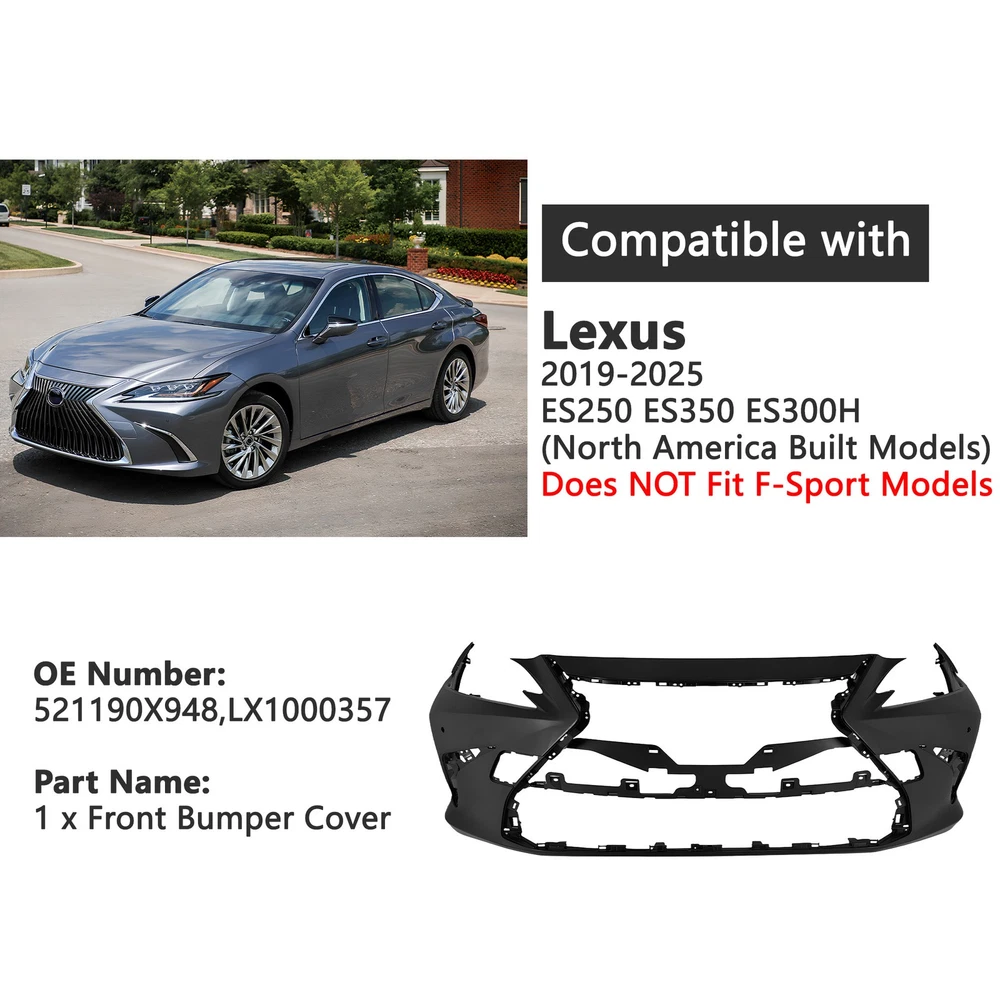 Store Home Hot Items Add to FAS Feedback Contact us STORE CATEGORIES Tools & Accessories NEWSLETTER Add my Store to your Favorites and receive my email newsletters about new items and special promotions! USER SERVICE Front Bumper Cover Fascia 521190X948 For 2019-2025 Lexus ES300h ES350 ES250 DESCRIPTION The Following Application: For 2019 - 2025 Lexus ES250 ES350( North America Built Models) *Does NOT Fit F-Sport Models* *Also Fits ES300H Models* Specifics: Condition: 100% Brand New,factory sealed. Replaces OE Number: 521190X948 Replacement for part numbers: LX1000357 Interchange Part Number: 521190X948, LX1000357 Parking Aid Sensor Holes: With parking aid sensor holes Assembly: Without mounting bracket(s) Finish:Primed Material:Plastic Placement on Vehicle: Front Type:Bumper Cover Manufacturer Warranty:6 Months Package Including: 1 x Front Bumper Cover SHIPPING PAYMENT RETURN CONTACT US FEEDBACK SHIPPING 1.Order before 3:30 pm CST ship in the Same Day . Please make sure entering correct payment and shipping information before checking out. Once your payment is completed, we are not going to accept any more changes to your order. 2. All domestic orders will be shipped via USPS,or Fedex from our US warehouse. . 3. Local pick up is available for all of our items. PAYMENT We accpet all major credit card and PayPal payments. RETURN All items purchased through PRIME-CARPARTS support 6 MONTH WARRANTY. If items purchased through PRIME-CARPARTS within 30 days that have not been installed can be returned for refund. Please email customer service and ship your order to the our address. Once we receive the return it will be inspected and the refund will be processed. CONTACT US We are committed to achieving 5 star ratings. We will try our best to resolve any kind of issue. Please contact us directly if you are not 100% satisfied or to confirm fitment of the items prior to ordering. FEEDBACK We strive for 100% customer satisfaction! FEEDBACK IS VERY IMPORTANT TO US. We request that you contact us immediately BEFORE you give us neutral or negative feedback, so that we can satisfactorily address your concerns. ESTIMATES We are the service that estimates fairly the issues with the car and gives you the precise help you need to make your car safe! TRUSTED Lots of satisfied clients return to our certified service to get preventative maintenance or get help from our skilled car mechanics! GUARANTEES We guarantee the quality of the work performed. That’s why we’re ready to solve any problem that arose again for free! Prime-Carparts Copyright Premium Car Parts . All Rights Reserved The Following Application: For 2019 - 2025 Lexus ES250 ES350( North America Built Models) *Does NOT Fit F-Sport Models* *Also Fits ES300H Models* Specifics: Condition: 100% Brand New,factory sealed. Replaces OE Number: 521190X948 Replacement for part numbers: LX1000357 Interchange Part Number: 521190X948, LX1000357 Parking Aid Sensor Holes: With parking aid sensor holes Assembly: Without mounting bracket(s) Finish:Primed Material:Plastic Placement on Vehicle: Front Type:Bumper Cover Manufacturer Warranty:6 Months Package Including: 1 x Front Bumper Cover
