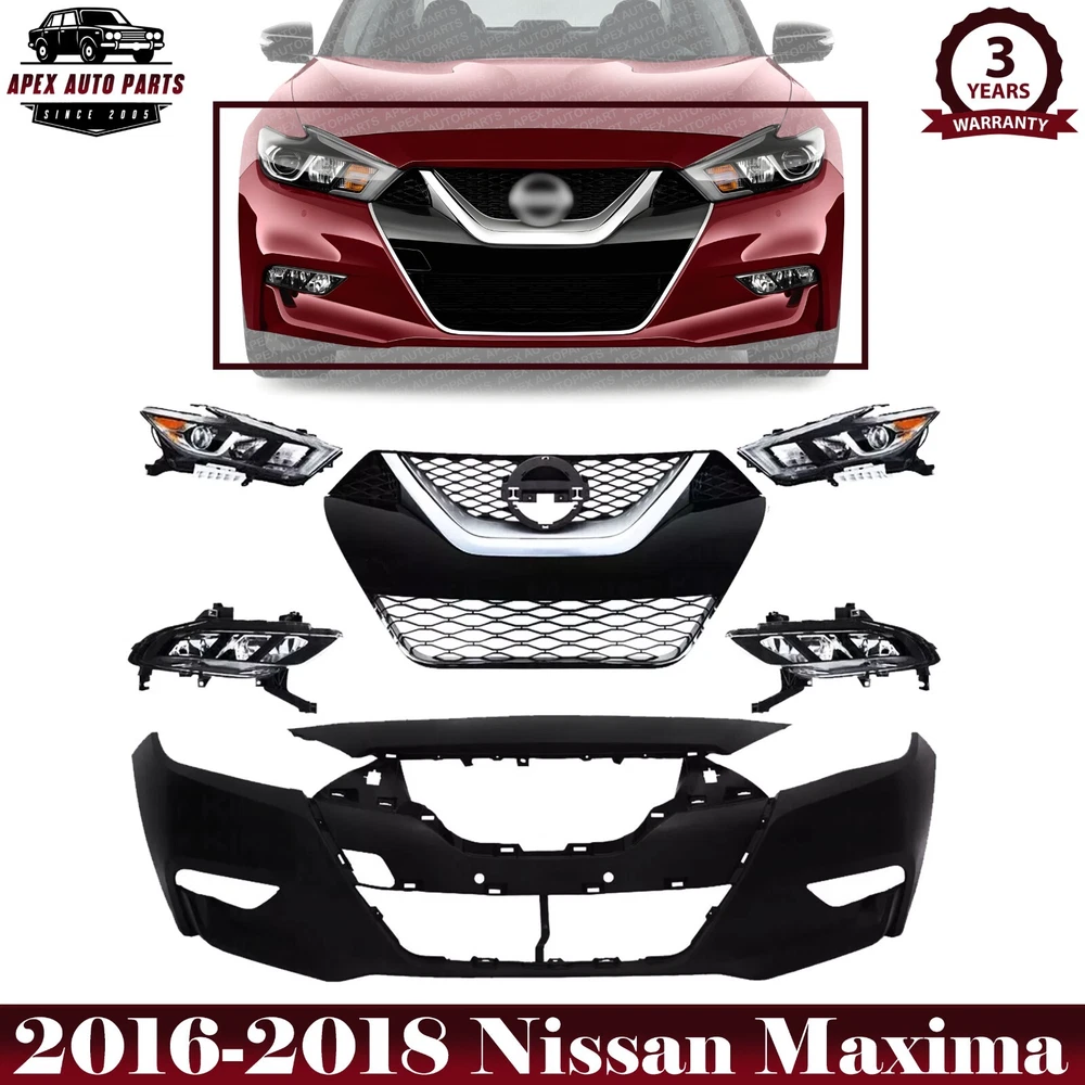 eBay Welcome to APEX AUTO PARTS Store Home About Us Feedback Add To Favorites New Arrivals Ending Soon Contact Us NEW Front Bumper Cover Paintable + Bumper Grille Chrome Trim + Headlight Assembly Pair + Fog Light LH Driver Side & RH Passenger Side For 2016 - 2018 Nissan Maxima Product Description WARNING : This product can expose you to chemical which is known to the State of California to cause cancer and birth defects or other reproductive harm. For more information go to www.P65Warnings.ca.gov. Specifics and Features : Quantity Sold : Set of 6 Product Fit : Direct Fit Recommended Use : OE Replacement Replaces OE Number : RPP151 Replaces Parts link Number : RPP151 Includes : 1 x Front Bumper Cover Primed 1 x Front Bumper Grille Chrome Trim 1 x Headlight Assembly Left Driver Side 1 x Headlight Assembly Right Passenger Side 1 x Fog Light Right Passenger Side 1 x Fog Light Left Driver Side Notes : Compatible with : 2016-2018 Maxima (submodel: Platinum, SL, SR, SV) Shipping Payment Returns Terms & Conditions Feedback Contact Us DOMESTIC LOWER 48 US STATES: FREE SALES TAX: CA ONLY VERY IMPORTANT: Double check shipping address. We are not responsible for incorrect or undeliverable addresses. Please use Shipping & Payments tab on top of page for shipping details for your location. Shipping to PR, HI, AK and PO Box addresses will be charged the same as shipping to Canada. GU, VI, SAIPAN will be charged the same as international shipping rate. For Canada shipping please select the lowest price. We do not offer expedited shipping. US Territories such as GU, VI, SAIPAN will be charged the same as CANADA shipping rate. Transaction will be held until a full shipping amount received. Some of the packages cannot be delivered to a PO Box. Customer is responsible to ensure PO Box address given is deliverable by the shipping company. Package will be held until a valid physical address is provided. Customer assumes shipping charges incurred in shipping to undeliverable address. International buyers are responsible for all customs duties, taxes, and other applicable fees incurred by the country's customs/border regulations. Please contact customs for more information. We ship 98% of all orders the same or next business day after payment received/cleared. Please understand that once orders are shipped, we cannot control the transit times thereafter. Most orders will ship via USPS First Class/Priority Mail or FedEx/UPS or the best suitable carrier for the specific size of the product. We are not responsible for any changes to address after item has been shipped. Item will be shipped out within 24-48 hours after payment cleared, except for weekends and holidays. PayPal e-check takes 3-7 business days to be processed. We will not ship until an e-check has been cleared. We do not accept returns. However, if there is an issue with your package, please contact us within 5 days of delivery. If we are not contacted within this period, we will be unable to process any claims. For emissions related items, please check with your local jurisdiction for emission specific requirements before purchasing. All items do not come with installation instruction unless otherwise specified. If item is questionable, please consult your local professional/mechanic before making purchase. Shipping DOMESTIC LOWER 48 US STATES: FREE SALES TAX: CA ONLY VERY IMPORTANT: Double check shipping address. We are not responsible for incorrect or undeliverable addresses. Please use Shipping & Payments tab on top of page for shipping details for your location. Shipping to PR, HI, AK and PO Box addresses will be charged the same as shipping to Canada. GU, VI, SAIPAN will be charged the same as international shipping rate. For Canada shipping please select the lowest price. We do not offer expedited shipping. US Territories such as GU, VI, SAIPAN will be charged the same as CANADA shipping rate. Transaction will be held until a full shipping amount received. Some of the packages cannot be delivered to a PO Box. Customer is responsible to ensure PO Box address given is deliverable by the shipping company. Package will be held until a valid physical address is provided. Customer assumes shipping charges incurred in shipping to undeliverable address. International buyers are responsible for all customs duties, taxes, and other applicable fees incurred by the country's customs/border regulations. Please contact customs for more information. We ship 98% of all orders the same or next business day after payment received/cleared. Please understand that once orders are shipped, we cannot control the transit times thereafter. Most orders will ship via USPS First Class/Priority Mail or FedEx/UPS or the best suitable carrier for the specific size of the product. We are not responsible for any changes to address after item has been shipped. Payment Item will be shipped out within 24 hours after payment cleared, except for weekends and holidays. PayPal e-check takes 3-7 business days to be processed. We will not ship until an e-check has been cleared. Returns 30 Days money back, please notify us within 30 days after you've received your purchased item. All return requests must be submitted through your eBay account. You have to obtain a RMA (Return Merchandise Authorization) number from us, and have the RMA number written on the return package. Buyers pay for return shipping fee. Items to be returned must be in resalable condition. All returns are for refund ONLY. No exchange accepted. Returns for refund are subject to a 20% restocking fee. Terms & Conditions For emissions related items, please check with your local jurisdiction for emission specific requirements before purchasing. All items do not come with installation instruction unless otherwise specified. If item is questionable, please consult your local professional/mechanic before making purchase. Feedback Contact Us Store Home About Us Feedback Add To Favorites New Arrivals Ending Soon Contact Us Nee