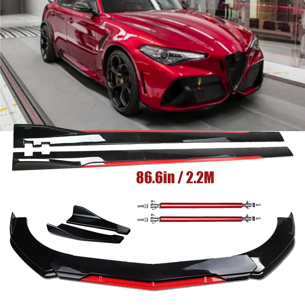 Package 1. Front Bumper Lip Spoiler Splitter(5pcs) This front bumper lip splitter is fit for most models with front bumper size around 1750mm~1950mm. Feature: -Direct Fit. -Easy install and durable use. -Great quality and great Fitment. -Correct Connector No cutting or splicing. -Strict quality control standards to Build and test. -It'll give you a sporty look without making it too aggressive. -Light in weight and enduring, different optical line comes from different points of view. *Instruction Not Included, Professional Installation Is Highly Recommended.* Specification: -Type:Front Lip Chin Bumper Body Kit -Material:ABS -Color: Glossy Black +Red (as pictures show) -Placement on Vehicle:Front;;Lower -Fitment Type:Performance/Custom This front bumper lip body kit is suitable for most small cars and simple. And the flanks on both sides can be adjusted to make it more suitable for the width of the front of your car. Package 2. 2 x 86.6" Side Skirt Extension ( 6pcs ) Specification: Condition: 100% Brand New and High Quality Type: Car Body Side Skirts Material: Made of high quality PP plastic, Durable Color: Glossy Black +Red (as pictures show) Surface Finish: Carbon Fiber Style Side Skirt Length: 86.6in / 2.2M Position: Side Skirt Extension Features: Universal modified side skirt for car sedan. While the side skirts don't affect the front ground clearance too much, it enhances the side extension of the in a very pure and exciting way. A Perfect Aftermarket Replacement. Professional Installation Is Highly Recommended. Package Included 3 Rear Lip Specification: Condition: 100% Brand New and High Quality Type: Car Body Rear Lip Material: Made of high quality PP plastic, Durable Color: Glossy Black (as pictures show) Surface Finish: Glossy Black Style Rear Lip Size:48cm/19“ Placement on Vehicle: Left, Right Package Included 4 2pcs Splitter Rods Material: premium quality aluminum alloy The length can be adjustable from 8" to 11" Fitment: Universal Note: Require drilling holes into the bumper lip diffuser to attach safely to the vehicle. Package Includes: 4 pcs /set Front Lip Chin Bumper Body Kits 2 x Side Skirts 2 x Rear Lip 2 X Splitter Strut Rods 1 x Screws kit Note: Installation instruction is not included, professional installation is recommended. Please allow 1-3CM differs due to manual measurement. Due to the different display and different light, the picture may not reflect the actual color of the item. Thanks for your understanding.