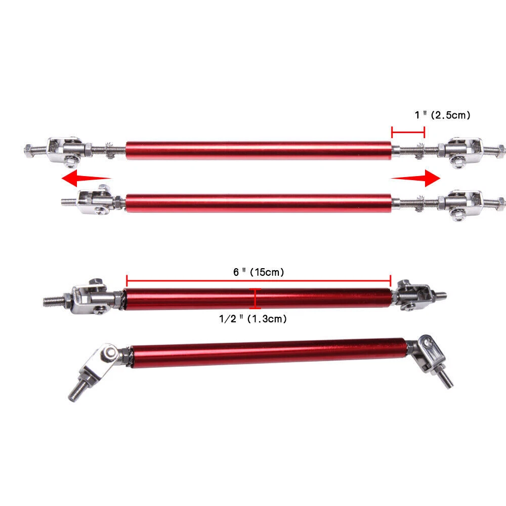 Package Included 1:Front Lip Chin Bumper Specification: Condition: 100% Brand New Type: Front Lip Chin Bumper Body Kits Material: ABS Color: Glossy Black Placement on Vehicle: Front ; Lower Features: Give your vehicles sporty appearance Protect Your Bumper From Scratching Strict quality control standards to Build and test. Come With Screws, Pre-drilled holes for quick installation Professional Installation Is Highly Recommended. Fit for Universal width 75". Package Included 2:Side Skirt ( 2pcs ) Specification: Condition: 100% Brand New and High Quality Type: Car Body Side Skirts Material: ABS Color: Glossy Black Side Skirt Size: 29 in x 1.77 in x 3.54 in Position: Side Skirt Extension Features: Universal modified side skirt for car sedan. While the side skirts don't affect the front ground clearance too much, it enhances the side extension of the in a very pure and exciting way. A Perfect Aftermarket Replacement. Professional Installation Is Highly Recommended. Package Included 3:Rear Lip ( 2pcs ) Specification: Condition: 100% Brand New and High Quality Type: Car Body Rear Lip Material: ABS Color: Glossy Black Rear Lip Size:17.32 in x 4.33 in Placement on Vehicle: Left, Right Package Included 4: Strut Rods(2pcs) Product Description This listing features for one pair (2 pieces) of blue front bumper lip splitter rod strut tie bar. These front bumper lip support rods are used to reinforce your front splitter or rear diffuser. It is universal fit for any cars, SUVs, trucks. You can extend its length from 8 inches to 11 inches. Specification * One pair (2 pieces) front bumper lip splitter rod strut tie bar * Material: Made with premium quality aluminum alloy chrome finish * The length can be adjustable from 8" to 11" * These include fully articulated top and bottom joins which allow them to be installed at any angle * It will support your vehicle bumper lip splitter stronger with and awesome eye-catching look We have Black, Red, Silver and Blue color in stock. Pls contact us if you want other color Package Includes: 4pcs/set Front Lip Chin Bumper Body Kits 2x Side Skirts 2x Rear Lip 2 x Adjustable Strut Rods Screws kit
