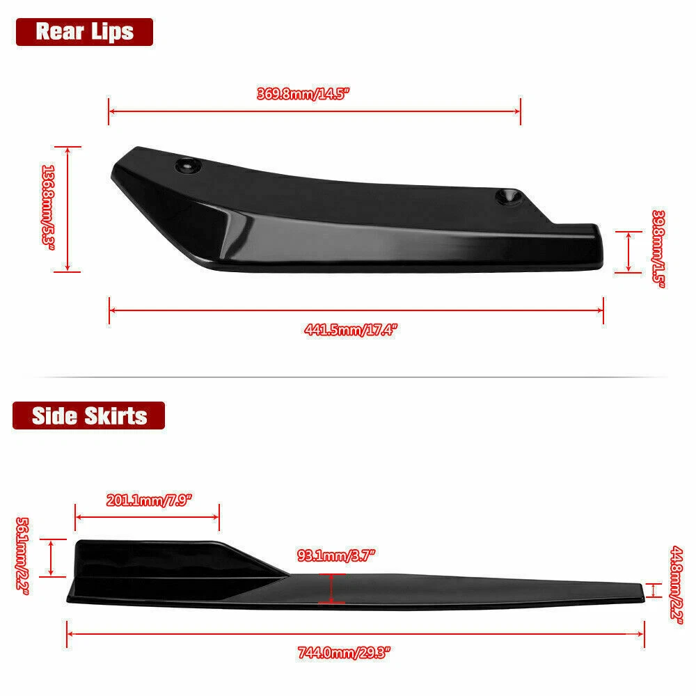 Package Included 1:Front Lip Chin Bumper Specification: Condition: 100% Brand New Type: Front Lip Chin Bumper Body Kits Material: ABS Color: Glossy Black Placement on Vehicle: Front ; Lower Features: Give your vehicles sporty appearance Protect Your Bumper From Scratching Strict quality control standards to Build and test. Come With Screws, Pre-drilled holes for quick installation Professional Installation Is Highly Recommended. Fit for Universal width 75". Package Included 2:Side Skirt ( 2pcs ) Specification: Condition: 100% Brand New and High Quality Type: Car Body Side Skirts Material: ABS Color: Glossy Black Side Skirt Size: 29 in x 1.77 in x 3.54 in Position: Side Skirt Extension Features: Universal modified side skirt for car sedan. While the side skirts don't affect the front ground clearance too much, it enhances the side extension of the in a very pure and exciting way. A Perfect Aftermarket Replacement. Professional Installation Is Highly Recommended. Package Included 3:Rear Lip ( 2pcs ) Specification: Condition: 100% Brand New and High Quality Type: Car Body Rear Lip Material: ABS Color: Glossy Black Rear Lip Size:17.32 in x 4.33 in Placement on Vehicle: Left, Right Package Included 4: Strut Rods(2pcs) Product Description This listing features for one pair (2 pieces) of blue front bumper lip splitter rod strut tie bar. These front bumper lip support rods are used to reinforce your front splitter or rear diffuser. It is universal fit for any cars, SUVs, trucks. You can extend its length from 8 inches to 11 inches. Specification * One pair (2 pieces) front bumper lip splitter rod strut tie bar * Material: Made with premium quality aluminum alloy chrome finish * The length can be adjustable from 8" to 11" * These include fully articulated top and bottom joins which allow them to be installed at any angle * It will support your vehicle bumper lip splitter stronger with and awesome eye-catching look We have Black, Red, Silver and Blue color in stock. Pls contact us if you want other color Package Includes: 4pcs/set Front Lip Chin Bumper Body Kits 2x Side Skirts 2x Rear Lip 2 x Adjustable Strut Rods Screws kit