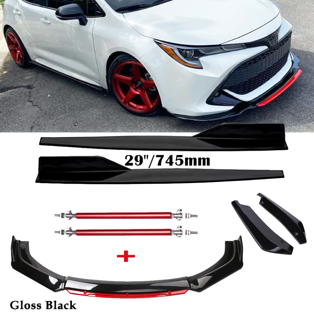 Package Included 1:Front Lip Chin Bumper Specification: Condition: 100% Brand New Type: Front Lip Chin Bumper Body Kits Material: ABS Color: Glossy Black Placement on Vehicle: Front ; Lower Features: Give your vehicles sporty appearance Protect Your Bumper From Scratching Strict quality control standards to Build and test. Come With Screws, Pre-drilled holes for quick installation Professional Installation Is Highly Recommended. Fit for Universal width 75". Package Included 2:Side Skirt ( 2pcs ) Specification: Condition: 100% Brand New and High Quality Type: Car Body Side Skirts Material: ABS Color: Glossy Black Side Skirt Size: 29 in x 1.77 in x 3.54 in Position: Side Skirt Extension Features: Universal modified side skirt for car sedan. While the side skirts don't affect the front ground clearance too much, it enhances the side extension of the in a very pure and exciting way. A Perfect Aftermarket Replacement. Professional Installation Is Highly Recommended. Package Included 3:Rear Lip ( 2pcs ) Specification: Condition: 100% Brand New and High Quality Type: Car Body Rear Lip Material: ABS Color: Glossy Black Rear Lip Size:17.32 in x 4.33 in Placement on Vehicle: Left, Right Package Included 4: Strut Rods(2pcs) Product Description This listing features for one pair (2 pieces) of blue front bumper lip splitter rod strut tie bar. These front bumper lip support rods are used to reinforce your front splitter or rear diffuser. It is universal fit for any cars, SUVs, trucks. You can extend its length from 8 inches to 11 inches. Specification * One pair (2 pieces) front bumper lip splitter rod strut tie bar * Material: Made with premium quality aluminum alloy chrome finish * The length can be adjustable from 8" to 11" * These include fully articulated top and bottom joins which allow them to be installed at any angle * It will support your vehicle bumper lip splitter stronger with and awesome eye-catching look We have Black, Red, Silver and Blue color in stock. Pls contact us if you want other color Package Includes: 4pcs/set Front Lip Chin Bumper Body Kits 2x Side Skirts 2x Rear Lip 2 x Adjustable Strut Rods Screws kit