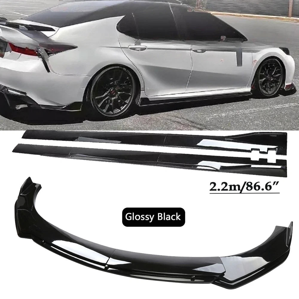 1.Front Bumper Lip Body Kit Spoiler Feature: Made of Updated durable and sturdy ABS plastic, adding stiffeners, no deformation in long-term use. Longer and wider than others. Provide an elegant and personalized appearance. Prevent the car from being scraped and improve the level of the decoration of the car. Adjustable angle, suitable for most models of Cars. Come with 2 blocks, More convenient installation, and stable adjustment. This is a set(4 pieces) front bumper cover lip front spoiler ***Instruction Not Included, Professional Installation Is Highly Recommended Specification: Type: Front Bumper Lip Body Kit Spoiler Material: High quality ABS Polyurethane Color: Glossy Black Weight: about 3.5 lbs Placement on Vehicle: Front; Lower Tough&Hard-wearing: Made from good-quality ABS Material with excellent abrasion-resistance and toughness, durable in use and NOT easy to deform. Dynamic Shape Design: With dynamic shape design, the front bumper lip can reduce wind resistance while driving. Protection: The sturdy materials of this front bumper lip can reduce damage and prevent the car from scratches. Advantages: 1.Prevent the car from being scraped and improve the level of the decoration of the car. 2.Reduce the wind resistance and disturbing effect. 3.Give 3D visual effect, Provide an elegant and personalized appearance 2.Side Skirt - Type: Side Skirt Extensions Splitters Diffuser, Side Skirt Extensions - Material: ABS - Color: Glossy Black - Length Size: 2.2m(86.6'') - Placement on Vehicle: Left & Right Feature Improve the appearance of the car, enhance the protection, and make the car stylish and cool Using matching bolts for easy installation(Screws and instruction are included). It requires drilling holes to attach the side skirts stably to the vehicle. (Application of double-sided tape may provide more stability and is very highly recommended. However, the double-sided tape is not included. ) Product may be trimmed to accommodate vehicle's side skirt length. ( Please measure your vehicles length before purchasing. ) Package Included 1 x Front Lip Chin Bumper Body Kits Pair of 2.2m Side Skirt Extensions (L&R) 10 x Screws On Oct 15, 2024 at 03:13:58 PDT, seller added the following information: