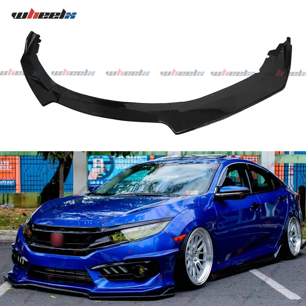 Front Bumper Splitter Lip For Honda Civic Ex Lx Sport Sedan 16-22 Glossy Black