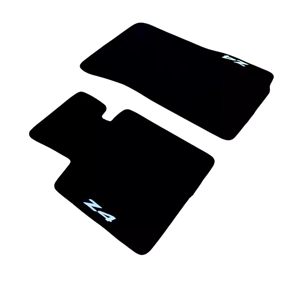 BMW Series Z4 E85 E86 2003-2009 2pcs Front Car floor mats compatible with BMW Z4 02.2003 - 09.2008 & Z4 Coupe E86 03.2006 - 09.2008 for all types of equipment, like M Z4 , M Performance , Luxury etc. Made of high quality tufted velour - carpet, 850gr/1m2 - made in Netherlands. Rubber Backing Edge stripe Embroidery logo Z4 Velcro stickers Anti Slip Long Lasting Waterproof Long lasting Perfect fitting Soft surface for driving comfort Easy to clean One set contains: Driver mat Co-Driver mat