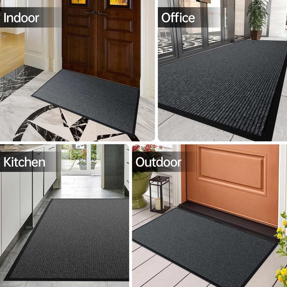 Deeply Absorbs and Captures Dirt: Our outdoor doormats can effectively trap and scrape away dirt and debris from the bottom of dirty shoes, outside door mat keeps your floors clean and tidy. Durable Material: The heavy duty door mat surface is made of premium polyester fibre material, tear, stain and fade resistant. With stripe design that picks up dirt faster, our high traffic welcome mats are designed to withstand heavy foot traffic. Non-Slip Rubber Backing: Our door mats are made with a thickened rubber back, it can be firmly fixed to the floor to prevent slipping. The low profile design makes it easy to open and close the door. Easy to Clean: Large door mat are ultra-absorbent and won't leach stains onto the floor. cleaning the outdoor floor mat, just shake off the dust and debris, you can vacuum the deep dirt when necessary, easy to keep your doorway clean. Multi-Purpose to Use: Our commercial door mat is widely used in outdoor, indoor, and other places with a lot of traffic. Multiple sizes are available to ensure you choose a waterproof door mat that suits you. size including 24" x 48", 24" x 72", 36" x 48", 36" x 60", 36" x 72", 48" x 72", 48" x 96",and 36" x 120".