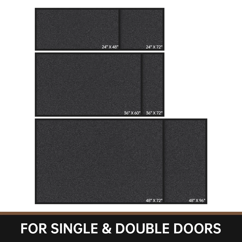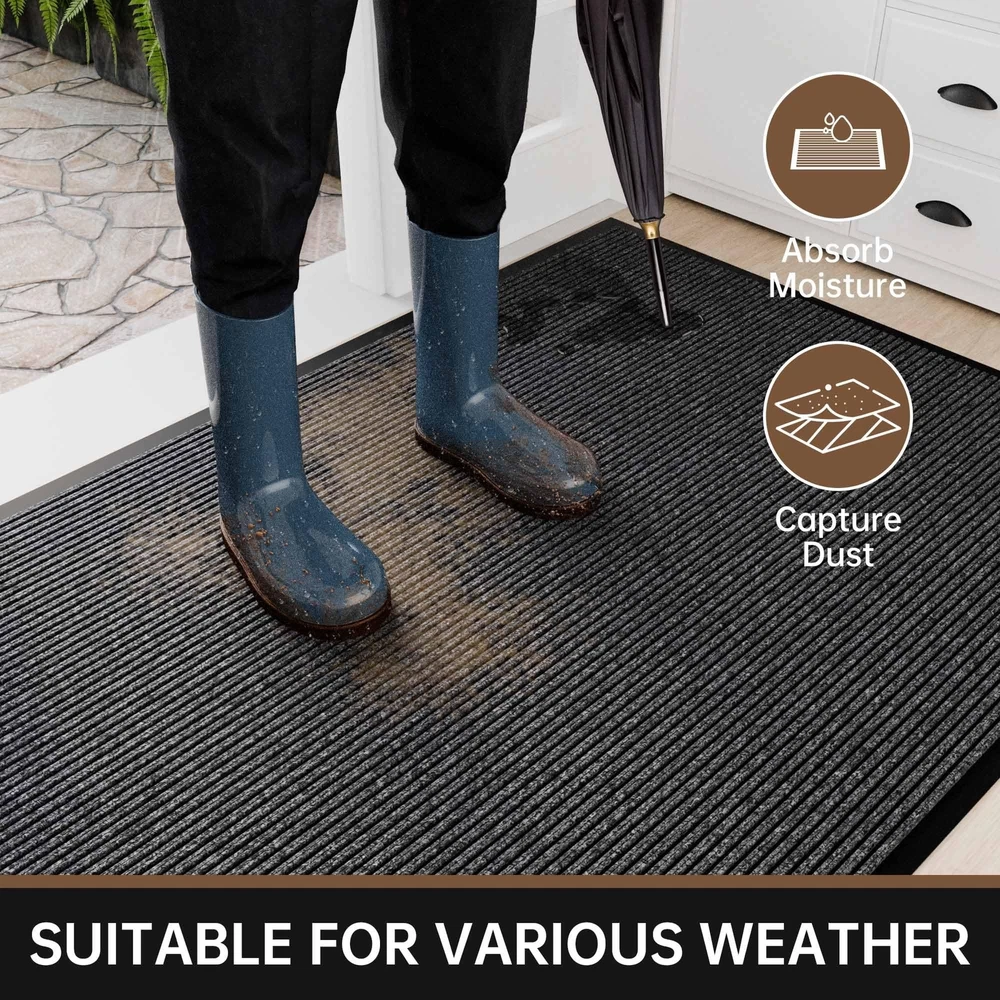 Front Door Mat, 48" x 24" Heavy Duty Indoor Outdoor Doormat, Non-Slip Welcome Mats for Entryway, Rubber Backing Low Profile Mats, Commercial Door Mats Product Details Size: 48" x 24" Brand: Futurwit MPN: Doormat24x48 UPC: Does not apply EAN: Does not apply Brand: Futurwit Size: 48" x 24" Material: Polyester Weave Type: Machine Made Pile Height: Low Pile Brand: Futurwit Size: 48" x 24" Material: Polyester Weave Type: Machine Made Pile Height: Low Pile Construction Type: Machine Made Back Material Type: Rubber Color: Grey Indoor/Outdoor Usage: Both Theme: Welcome Is Stain Resistant: Yes Product Care Instructions: Rinse, Shake Off, Sweep, Vacuum Pattern: Striped Shape: Rectangular Special Feature: Non Slip Room Type: Hallway Product Dimensions: 48"L x 24"W Rug Form Type: Doormat Style: Doormat Occasion: Housewarming Number of Pieces: 1 Item Thickness: 0.26 Inches Water Resistance Level: Water Resistant Model Name: Doormat Age Range (Description): Adult Item Weight: 6.89 pounds Manufacturer: Futurwit Item model number: Doormat24x48 Date First Available: December 15, 2023 UNIVERSAL DOOR MATS FOR INDOORS AND OUTDOORS: no matter what the weather, our door mat will keep indoor and outdoor areas clean and dry. Ideal for indoor and outdoor environments, providing a clean area of rug protection. NON-SLIP RUBBER BACKING: Heavy-duty rubber backing holds the outdoor mat firmly in place, wider edges reduce daily wear and tear on the doormat, and fade-resistant material makes the large front door mat more durable. EFFECTIVELY CAPTURE DIRT: The top of the outdoor doormat is made of premium polyester with a grooved design that provides cushioning and anti-slip effect while trapping dirt and debris, which effectively traps moisture. Keep your home's entrance clean. EASY TO CLEAN: Simply clean the outdoor floor mat with a broom or vacuum cleaner, or patting the rubber backing and shaking the outdoor doormat can also remove most of the dirt. After prolonged use, rinse the doormat with a garden hose and air dry well. LOW-PROFILE DESIGN: The overall thickness of the outdoor rubber mats is 0.26 inches, allowing doors to open easily over the welcome mat. The tight fibers at the top work well to keep dust and dirt out of your home.