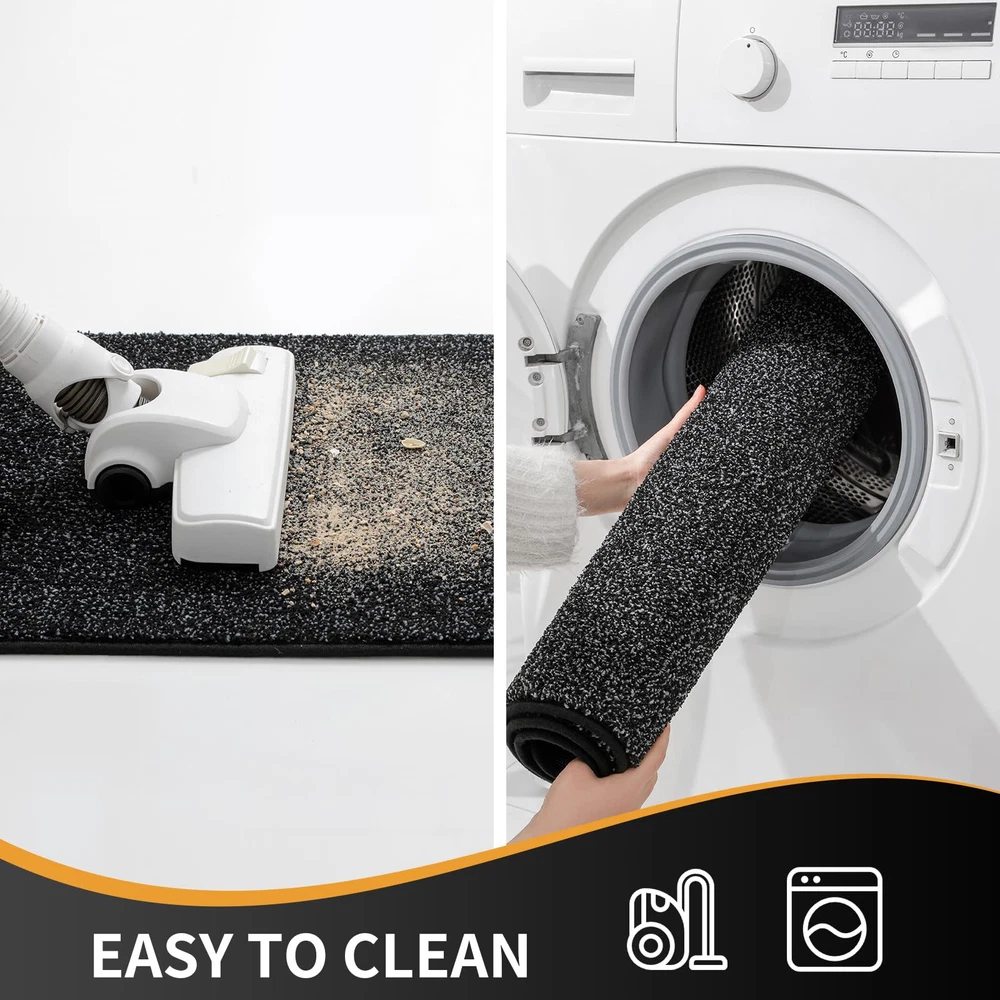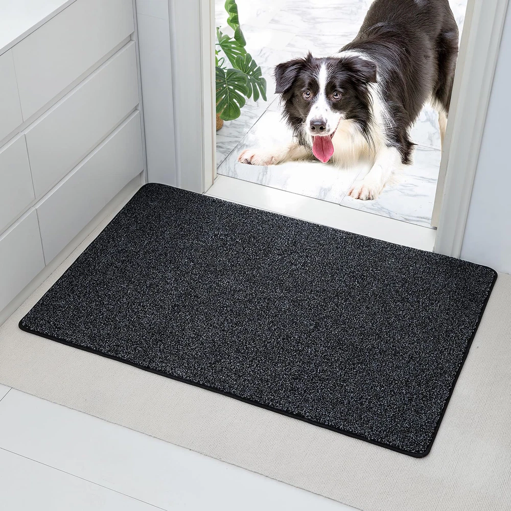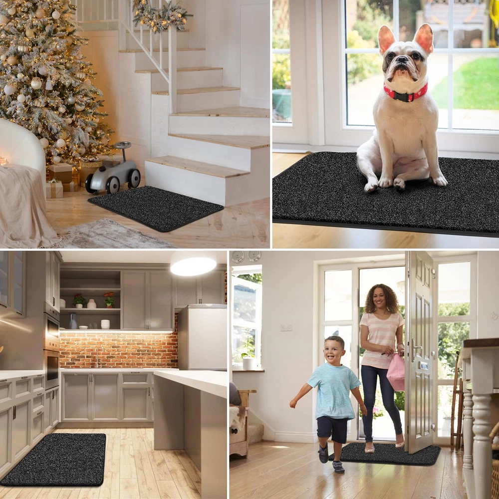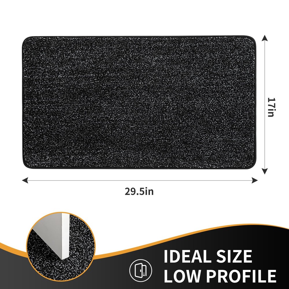 TRAP DIRT & MOISTURE : Indoor Doormat is made of high-quality absorbent polypropylene fabric, which absorb moisture and dirt from shoes quickly, makes your floors clean and dry, especially for the rainy, snowy, or muddy weather. SORF & DURABLE: The surface of this indoor mat is made of high-quality polyester which is durable, super absorbent, and comfortable to walk on. And the non-skid TPR rubber backing prevent you from slipping and also won't scuff floors, perfect for indoor use. Before placing, please make sure the floor is clean and dry. EASY TO CLEAN: The stain resistant polyester carpet surface removes dirt from shoes easily. When your doormat gets dirty, first shake it off outdoors or over your garbage bins, then sweep with the vacuum regularly. For deeper clean: machine wash separately in cold water, using mild detergent. Tumble dry, low heat. Do not use bleach or fabric softener. Our door mat will not fade or wear out and will remain like new even after repeated washing. LOW PROFILE: Low-profile design and reinforced overlock edges tend to have a firmer brushing action and allow the door to open easily over it without jamming or curling, ideal for low clearing doors or entryways. VERSATILE: Choose from 5 sizes in 17" x 29.5", 20" x 31.5", 24" x 35.5", 31.5" x 47", 35.5" x 59"as your need. This utility dust floor mats can be used as indoor doormat or as an exterior door mat for front door, back door, pet entry, indoor entrance, kitchen, laundry, bathroom or any areas with heavy traffic.