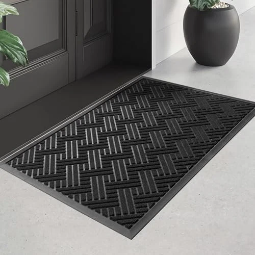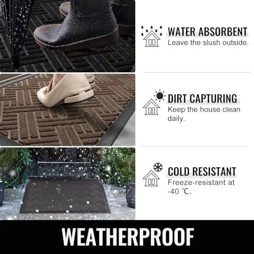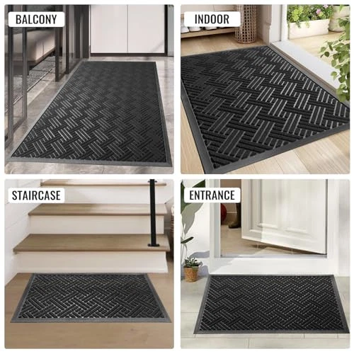 Front Door Mat Indoor Outdoor Entrance, Welcome Mat for Entryway, Stain and