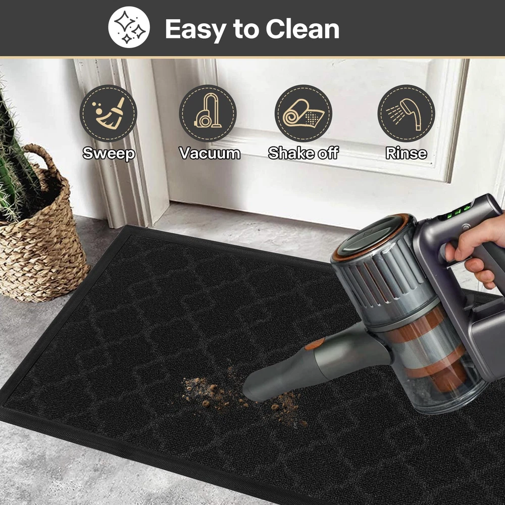 Dirt Trapper: The surface of welcome mat for front door is made of high quality polypropylene, which is more effective in trapping dust, dirt, sand or other debris and preventing them from entering the room, thus keeping the indoor floor clean and tidy. Natural Rubber and Non-Slip: The natural rubber backing of the outdoor doormat has higher tensile strength and tear resistance and less odor than synthetic rubber, plus this outdoor doormat grips the ground firmly on both dry and wet surfaces, keeping you safe and comfortable with your home. Widely Use: Our doormats for outdoor are used for all weather, very suitable for indoor, outdoor, front door, side door, walkway, entrance, hall, garage, patio, barn or any other heavy duty areas. Low Pile: The low profile makes our dirt trapper mat outdoor suitable for most entrances. The door can be opened and closed smoothly without the risk of tripping. Easy to Clean: The dirt trapper door mat outdoor is very easy to clean, you can clean it with vacuum cleaner or sweep with a broom, or tap the backing and shake the indoor entrance door mat. If it need a deeper clean, use a garden hose to rinse the doormat, and hang it in a ventilated place to air dry it.