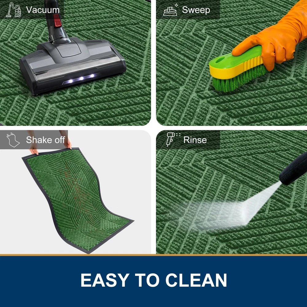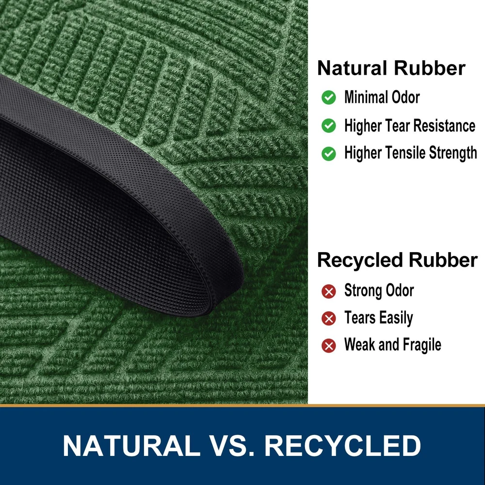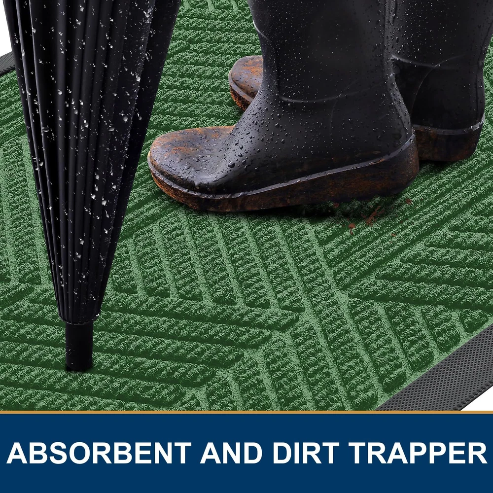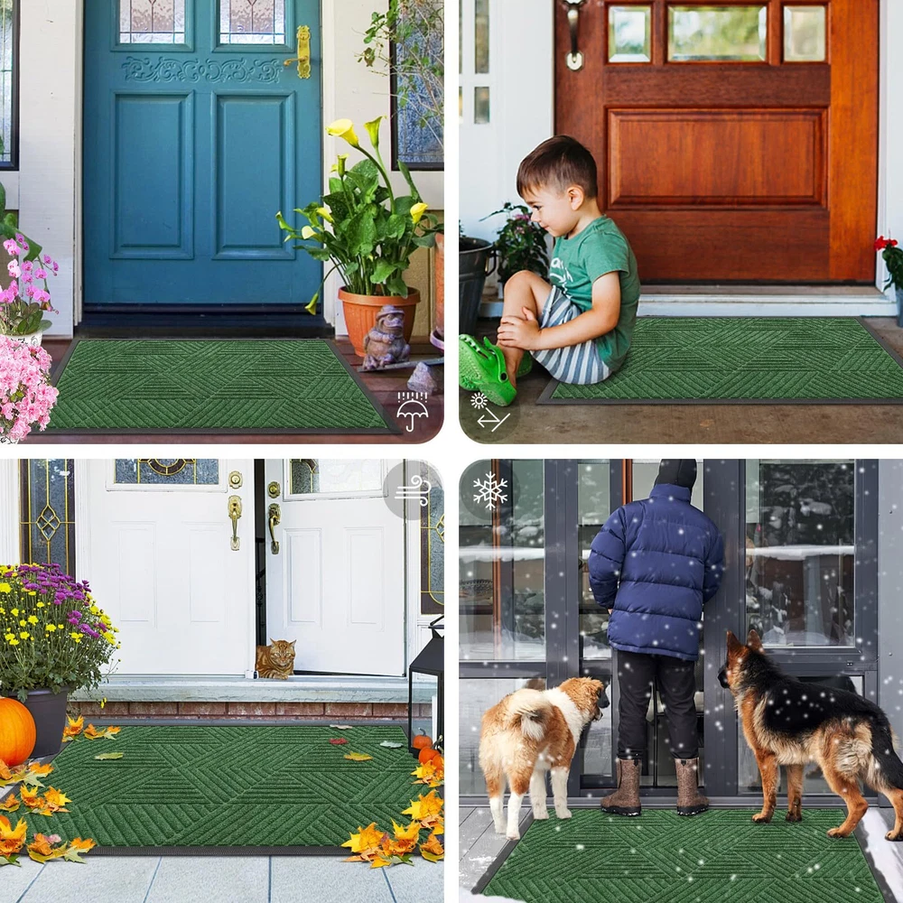 【Moisture & Dirt Absorbent】: The surface of the door mat is made of woven polyester fabric. The deep grooves can effectively trap the dust, gravel, mud, sand and other clutter. The sturdy beveled rubber edge will not accumulate water. Even rainy, snowy or muddy weather will keep your home dry and clean. 【Sturdy & Non-Faded】: Good quality natural rubber makes the door mat long-lasting. Not easy to tear and excellent tensile strength to withstand all weather and seasonal changes. Odorless and fastness to fading makes the process of reuse more pleasant. 【Non-Slip & Low-Profile】: The sturdy non-slip rubber liner has a strong grip, that not only keeps water and mud from seeping into the floor and damaging the floor, but also keeps the door mat from sliding in use. The low profile makes our doormats suitable for most entrances. The door can be opened and closed smoothly without the risk of tripping. 【Easy to Clean】: front door mat can be swept with a broom, lifted by hand, or vacuumed. For a deeper cleaning, use a washing machine or hose to rinse, then hang it in a ventilated place to air-dry or tumble-dry. Do not use bleach or fabric softeners. 【Wide Use】: The classic design doormat is versatile and suitable for both indoor and outdoor use. They are a good choice to keep your home clean by placing them in the doorway, terrace, ground, etc. They are the perfect choice for decorations and thoughtful gestures for families and friends.