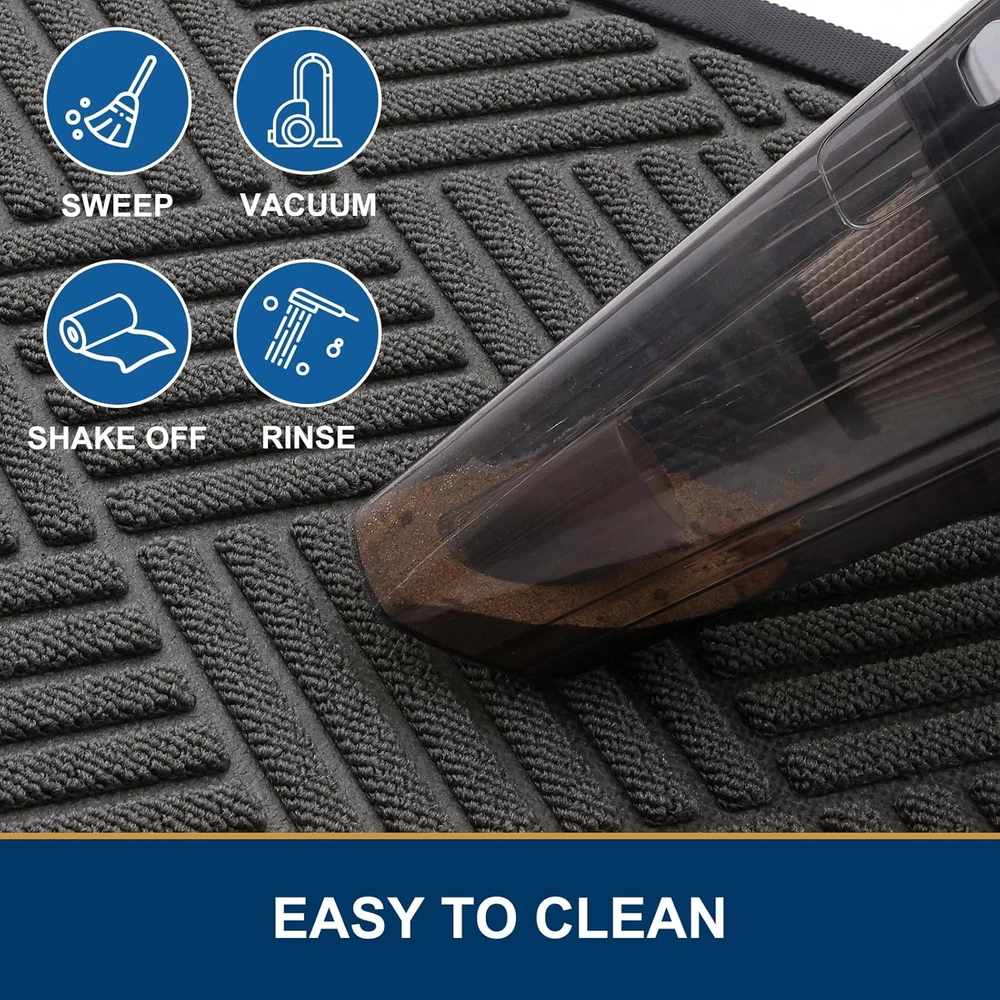 Store New Arrivals Add to Favorite View Feedback Contact Fast deliveries to the customer's home Quality customer service John Make the customers happy! Front Door Mat outside Entrance, Heavy Duty Outdoor Indoor Natural Rubber Doormat, Non Slip, Trap Dirt and Moisture, Easy Clean, Low Profile Patio Porch Entryway Mat, 29.5X17, Grey Description Capture Dirt and Moisture: The surface of the Smiry door mat is crafted from woven polyester fabric. The deep grooves can effectively trap the dust, gravel, mud, sand and other clutter. The sturdy beveled rubber edge will not accumulate water. Even rainy, snowy or muddy weather will keep your home dry and clean Sturdy & Non-Faded: Good quality natural rubber makes the door mat long-lasting. Excellent tensile strength and not easy to tear withstand all weather and seasonal changes. Odorless and fastness to fading makes the process of reuse more pleasant Non-Slip & Low-Profile: The sturdy non-slip rubber liner has a strong grip, that not only stops water and mud from seeping into the floor and damaging the floor, but also keeps the door mat from sliding in use. The low profile makes our doormats suitable for most entrances. The door can be opened and closed smoothly without the risk of tripping Easy to Clean: Smiry front door mat can be swept with a broom, lifted by hand, or vacuumed. For a deeper cleaning, use a washing machine or hose to rinse, then hang it in a ventilated place to air-dry or tumble-dry. Do not use bleach or fabric softeners Versatile Use: Smiry front door mats seamlessly blend style and practicality, perfect for indoor spaces like homes, living areas, lobbies, and offices, ensuring cleanliness. Equally suited for outdoor use, these mats excel in high-traffic areas such as front doors, sidewalks, terraces, garages, barns, and driveways. Heavy and sturdy materials, soft and flexible; Simple and stylish design complements any decoration Product Description Weave Type Flat Woven Pattern Geometric Country of Origin China Is Stain Resistant Yes Theme Geometric Number of Pieces 1 Room Type Entryway, Porch Product Dimensions 29.5"L x 17"W Material Polyester Seasons All seasons Rug Form Type Doormat Water Resistance Level Water Resistant Item Weight 2.64 pounds Pile Height Low Pile Construction Type Polyester and Rubber Occasion indoor, outdoor Color Grey Shape Rectangular Back Material Type Rubber Recommended Uses For Product Indoor/Outdoor Use, High-Traffic Areas, Front Doors, Sidewalks, Terraces, Garages Product Care Instructions Machine Wash Size 29.5" x 17" ABOUT US We offer the best prices around on high quality products. Our E-store includes media such as books, movies, music and games while offering electronics, toys, sporting apparel, clothing, tools, general home, garden items and more. SHIPPING We are always working hard to ensure your package arrives as soon as possible. Please understand that some factors like weather, high postal traffic, and the performance of shipping companies are outside of our control. We offer free shipping to the lower 48 states and ship within 2 business days of payment, usually sooner. We do not accept P.O. Boxes. Please provide a physical address. For shipping outside of the continental USA, we only use eBay's Global Shipping Program. The item is shipped to KY and then sent to the rest of the world. International customers are responsible for all duties and taxes. Continue to 'check out' to calculate costs for shipping the item to your country. Messages regarding eBay's Global Shipping Program MUST be directed at eBay EXCLUSIVELY. RETURNS We offer a 30-Day Return Policy on items in which you are not completely satisfied with. You have the option of a full-refund or an exchange of the item. No returns are available on items shipped outside of the USA PAYMENT We accept PayPal. CONTACT US This page content is yet to come Please ad us to your favorite seller and visit again later Thank You CUSTOMER SATISFACTION We try our very best to make sure every customer is completely satisfied. If there's a problem, message us! We're happy to help. WE ACCEPT