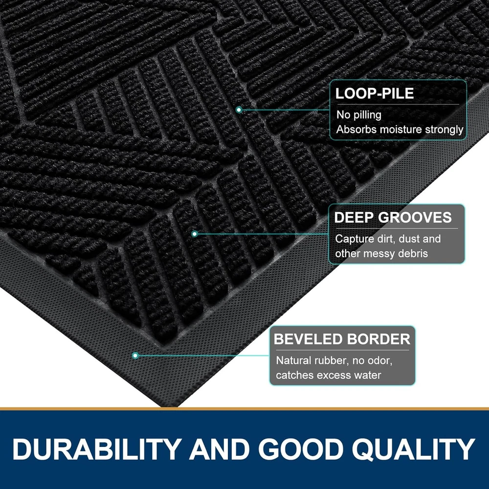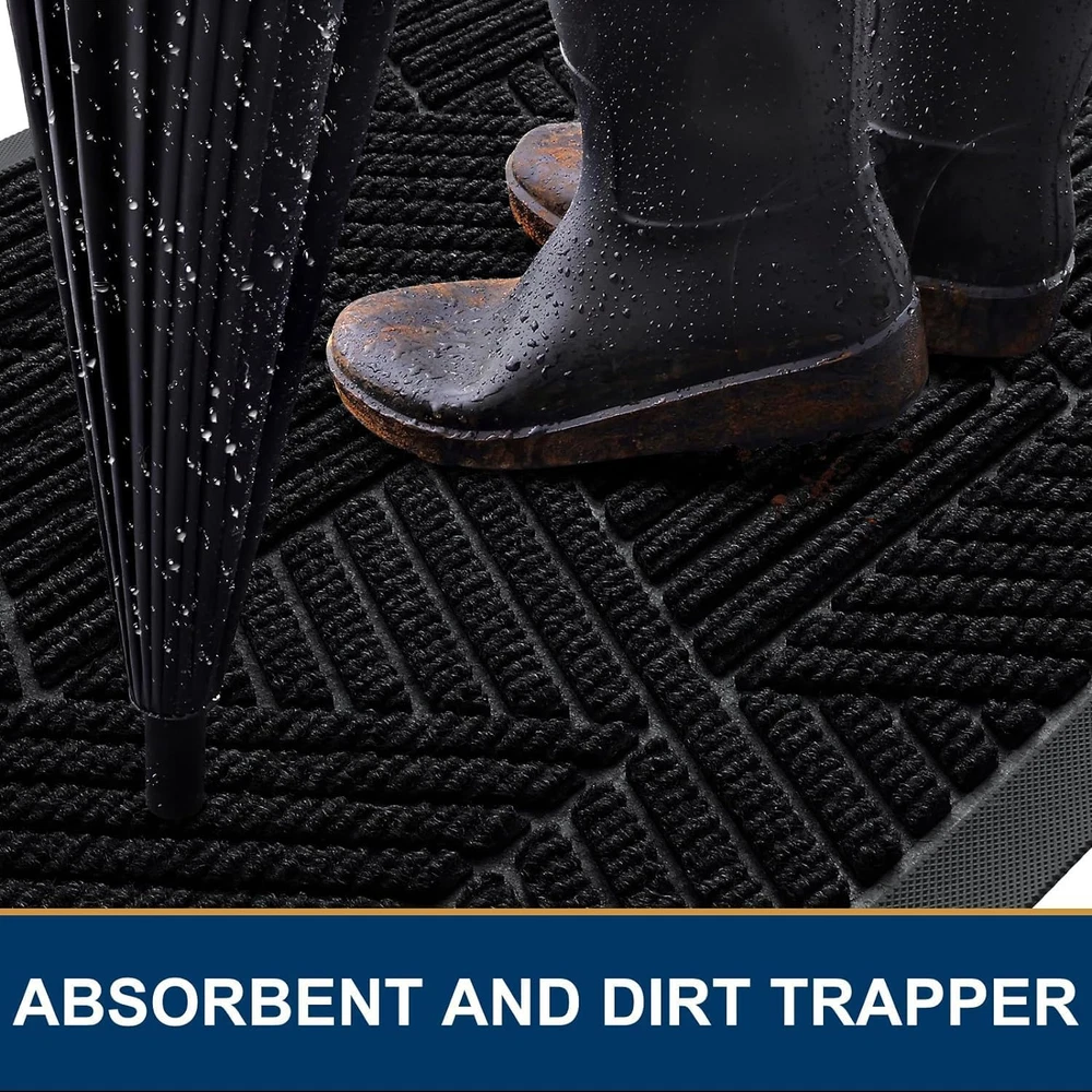 Front Door Mat outside Entrance, Heavy Duty Sturdy Natural Rubber Doormat, Trap