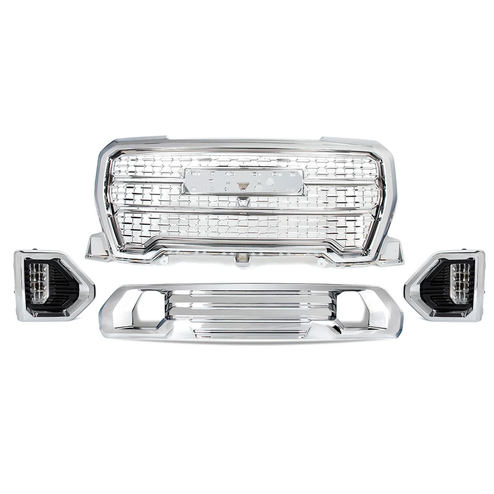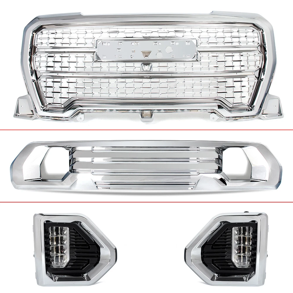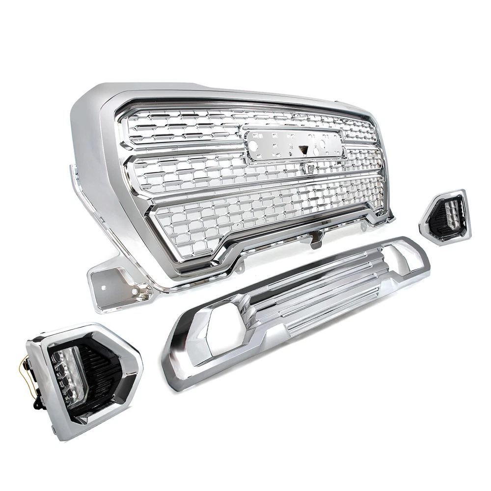 Front Grille Fog Light W/ Bezel Trim Fit 2019 2020 2021 GMC Sierra 1500 Denali We appreciate you place an order, If you are satisfied with the item and our total service, Please take a moment to leaving us a POSITIVE FEEDBACK and perfect " 5 STAR " scores, If you have any problem with your purchase,shipment,return/exchange,or any others, Please contact us firstly,so that we can satisfactorily address your concerns, We will give you our best item and service. Specification: Condition: 100% Brand New Color: Chrome Style: Denali Style Material: High Quality ABS Plastic Placement on Vehicle: Front,Upper,Lower,Left,Right Surface Finish: Painted Package Size:152*61*20cm(59.84"*24.01"*7.87") Gross Weight: 22.04LB (10KG) Features: - Easy install and durable use. - Great quality and great fitment. - 100% brand new and high quality guaranteed. - Strict quality control standards to build and test. - Useful,helpful and so practical. - Factory bolt-on fitment,no vehicle modifications are required. Fitment: Fit For GMC Sierra 1500 Denali 2019-2021 Fit For GMC Sierra 1500 AT4 2019-2021 Package Include: 1Set Front Bumper Grille&Fog Light Bezel Kits Note: -Please check the size measurement chart carefully before making payment. -Please allow 0.5-1 inch difference due to manual measurement.(1 inch=2.54cm) -The color of the actual items may slightly different from the listing images due to different computer screen, thanks for your understanding. -Instruction is not included. -Professional Installation Recommended. 1.We Accept Payment Through Paypal Only. 2.The eBay members must fulfill the requirement.(PayPal verified and confirmed address; the account holder must be the receiver). 3.Please complete your payment within 2 days after the item is won.If you have difficulty completing your payment within the required time, please contact us.Non-Pay Dispute will be filed against your account after the 2th day. 4.Our price does not include Duties,Value Added Taxes,Customs Clearance Fees,and other charges. These charges are the buyer's responsibility.Please check with your country's customs office to determine what these additional costs will be before bidding/buying. 5.The buyer needs to pay for the above fees in case that occurred for certain goods.If the parcel returns back to us due to the buyer refuse to pay those fees,we would not send the parcel again unless the buyer completes those fees and pay all the return and resend cost.The buyer can not cancel the order or request a refund due to this reason. 1.Free Shipping with FedEx/UPS/USPS to the Mainland 48 states ONLY 2.PO Box,AK/HI/PR and APO/FPO address will not be accepted. 3.Package will be shipped to your eBay shipping address within 48 hours(except for weekend and public holiday) after payment is cleared. 4.Payment cleared/received on Friday will be shipped on the next business days (Monday or Tuesday) 5.Order is typically shipped in 1-2 business day after payment is completed. Shipping confirmation with tracking number will be sent to your eBay email address when your order is shipped. Please note that we do not ship orders on Saturdays,Sundays,and national holidays. 6.All our items will be shipped to the address you submit, please confirm your address on before you bid or purchase. 7.Shipping time may vary depends on your area. Delivery may be delayed due to extreme weather or special circumstances. Please wait patiently. -All items sold by us are being described to the best of our abilities,as accurate as possible,and with utmost conscientiousness on our part.However,to avoid any potential oversights,we respectfully request your assistance in helping us to make this a mutually satisfactory transaction by THOROUGHLY reviewing item description and photos,and asking all questions PRIOR TO BIDDING. -We stand behind the quality of all of our products.All products are double inspected before stocking and dispatching.However,sometimes mistake may slip by and the product may get damaged during the process of delivery.If such trouble occurs to you,please take a minute to refer to the following instruction. -If the package arrives at your location with obvious shipping damage (including broken envelop,empty package and etc),please refuse the shipment. -If you find the item is defective after you accept the shipment,please save everything that is attached in the package,including all the documents,and contact us immediately,either through eBay message or email address. -You should state your item ID,item title and what the damage is clearly in your email.And please be advised that digital photos must be attached to the email you send. -And please bear in mind that you should contact us within 3 days since the day you receive the package,or it will be your own responsibility to take the lost of the defective item. Welcome to our Ebay store. We are professional of selling premium quality auto parts. All kinds of modified and aftermarket body parts for BMW,Benz,Ford,Audi,Jeep,Chevrolet and so on. For more details,please contact us. Thank you for your business. Certain images and/or photos used in this template are the copyrighted property of Macmillan digital publishing USA and are used with permission. Specification: Condition: 100% Brand New Color: Chrome Style: Denali Style Material: High Quality ABS Plastic Placement on Vehicle: Front,Upper,Lower,Left,Right Surface Finish: Painted Package Size:152*61*20cm(59.84"*24.01"*7.87") Gross Weight: 22.04LB (10KG) Features: - Easy install and durable use. - Great quality and great fitment. - 100% brand new and high quality guaranteed. - Strict quality control standards to build and test. - Useful,helpful and so practical. - Factory bolt-on fitment,no vehicle modifications are required. Fitment: Fit For GMC Sierra 1500 Denali 2019-2021 Fit For GMC Sierra 1500 AT4 2019-2021 Package Include: 1Set Front Bumper Grille&Fog Light Bezel Kits Note: -Please check the size measurement chart carefully before making payment. -Plea