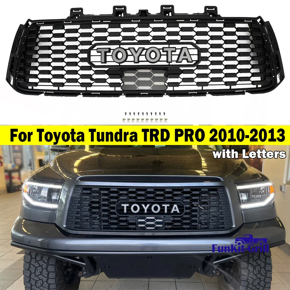 Product Description Front Grille For 2010 2010 2011 2012 2013 Tundra TRD PRO Grill Matte Black ABS Fitment: For Toyota Tundra 2010 2011 2012 2013 With the sensor cover !!!! Package Included: 1x Front Grille 1 set of letters( As pic shows) Feature: Gives your vehicle a new style and appearance Accentuates your vehicles overall look A great upgrade for your vehicle Provides better airflow to the radiator to help the cooling process best Specifications: Type: Front Grille Material: ABS Plastic Color: Matte Black Fitment Type: Direct Replacement Placement on Vehicle: Front, Upper *If you have any question, just feel free to contact us. About Us Payment Shipping Returns Contact Us Welcome to FunKit ,this is a professional shop selling Auto parts, with high-quality and affordable products.You can choose the products suitable for your car, we provide you with the best price and high quality products. Thank you for your business.If you have any questions, please contact us. Please leave us with positive feedback if you are satisfied with our products and services,if not, please contact us before leave any neutral or negative feedback,we'll try our best to satisfy with you. Thank you! We only accept PayPal payment. IMPORTANT NOTICE: We ship our products via FedEX or USPS. In some cases,your purchase will be shipped in two packages(e.g. Grille is in a package,letters,LED lights are in another packge),so please be patience if you recieve one of them first. -We do not offer expedited shipping. -We only ship to the Lower 48 states, and we do not ship to FPO, APO or PO Box addresses. And we are not responsible for wrong or undeliverable address. Please provide us your full address with Telephone number and make sure your shipping address is correct and deliverable. If you need to change your address,please change it in PayPal first before you pay. -Package handling only takes 1 business day at our warehouse, so please make sure entering correct payment and shipping information before checking out. -We are not responsible for any changed of address after item has been shipped. Return: We offer a 30-Day Limited Warranty. If you are not satisfied with your purchase, we are more than happy to offer an exchange or refund within 30 days. !!! No returns are accepted after installation/used. ***Received Incorrect / Damaged / Missing Item: Please take some photos of everything you have received in the package, along with a picture of the invoice and shipping label and send it to our email. We will take care of everything. Please inspect the items upon receiving any damages or missing contents. Please contact us within 7 days of delivery via email. If you change your mind / don't like it / buy it by mistake. Please repack the items carefully. Items to be returned must be in resalable condition. Returned items will be tested and if found defective / incorrect / damaged / missing parts,we will deduct the refund based on the condition of the item. The product must in brand NEW conditions and in original packaging. Installations: It is imperative that buyers understand the items are vehicle-related and require installation and vehicle knowledge. Some of our parts are direct from EUROPE or ASIA which may require modification to complete the installation. Most of the items do not have installation instructions. We highly recommend professional installation if you are not familiar with the installation. If you have any question regarding this listing, Please send us a message. Before leaving us neutral or negative feedback, please contact us first. We will do everything we can to give you a satisfying solution. We do our best to resolve any issue. Leaving negative feedbacks and low ratings doesn't get things solved. So please talk with us and we will not let you down. Business hours: Monday to Friday (exclude Holidays) 9:00 A.M. – 6:00 P.M. Pacific Standard Time ***We do not answer any emails over the weekends and holidays. All emails will be replied in the order it was received on the following business day. About Us Welcome to FunKit ,this is a professional shop selling Auto parts, with high-quality and affordable products.You can choose the products suitable for your car, we provide you with the best price and high quality products. Thank you for your business.If you have any questions, please contact us. Please leave us with positive feedback if you are satisfied with our products and services,if not, please contact us before leave any neutral or negative feedback,we'll try our best to satisfy with you. Thank you! Payment We only accept PayPal payment. Shipping IMPORTANT NOTICE: We ship our products via FedEX or USPS. In some cases,your purchase will be shipped in two packages(e.g. Grille is in a package,letters,LED lights are in another packge),so please be patience if you recieve one of them first. -We do not offer expedited shipping. -We only ship to the Lower 48 states, and we do not ship to FPO, APO or PO Box addresses. And we are not responsible for wrong or undeliverable address. Please provide us your full address with Telephone number and make sure your shipping address is correct and deliverable. If you need to change your address,please change it in PayPal first before you pay. -Package handling only takes 1 business day at our warehouse, so please make sure entering correct payment and shipping information before checking out. -We are not responsible for any changed of address after item has been shipped. Returns Return: We offer a 30-Day Limited Warranty. If you are not satisfied with your purchase, we are more than happy to offer an exchange or refund within 30 days. !!! No returns are accepted after installation/used. ***Received Incorrect / Damaged / Missing Item: Please take some photos of everything you have received in the package, along with a picture of the invoice and shipping label and send it to our email. We will take care of everything. Please inspect the items upon receiving any damage