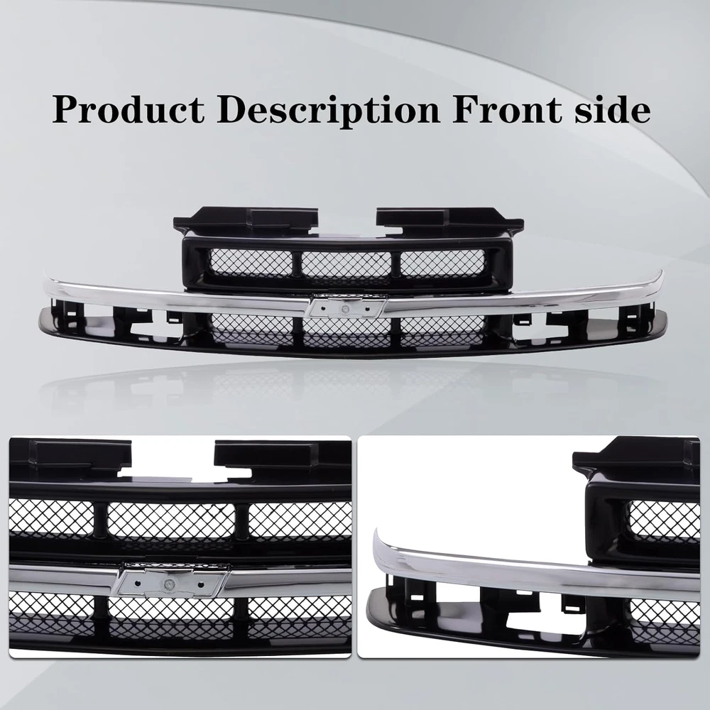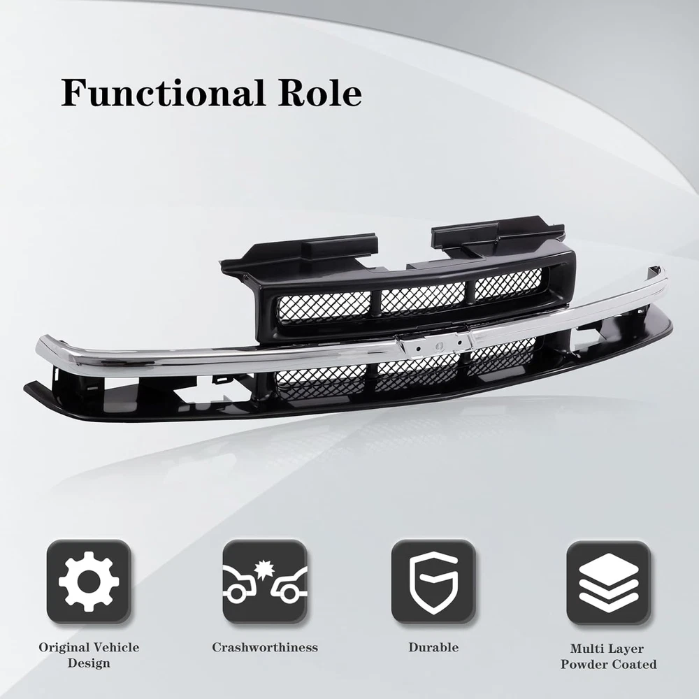 Store New Arrivals Add to Favorite View Feedback Contact Front Grille Grill with Chrome Center Bar Compatible with Chevrolet Chevy 1998-2004 S10 | 1998-2005 Blazer with Black Insert Description Material Plastic Item Weight 11.2 Pounds Color Chrome &Black Product Grade Replacement Part Material Type Plastic Manufacturer Part Number CPD-21-80532 Model Number CPD-CV832-1380CNF Vehicle Service Type Truck Item Weight 11.2 Pounds Installation Type Insert Compatible with Vehicle Type Truck Size Grille | w/Center Bar Item Fitment: Compatible With Chevrolet Chevy Blazer S10 Sport Utility Vehicle Standard Extended Cab Pickup 2005 2004 2003 2002 2001 2000 1999 1998 Xtreme SS Number: 12471853, GM1200413 Enhance Appearance: Front black grille assembly with black molding center bar and emblem provision, gives your vehicle a distinctive and stylish look, making it stand out on the road Durable: Boasting superior durability and outstanding impact resistance, it is the ideal material for off-road use Improve air circulation: It helps in directing the airflow to the engine compartment for better cooling and ventilation Protection: Protect the engine and radiator, acts as a barrier, preventing debris and large particles from entering and damaging the engine and radiator Product Description More Related Products Add to Cart Add to Cart Add to Cart Add to Cart Add to Cart Add to Cart Customer Reviews 5.0 out of 5 stars 3 5.0 out of 5 stars 3 5.0 out of 5 stars 1 4.7 out of 5 stars 105 4.7 out of 5 stars 105 4.7 out of 5 stars 105 Price $102.48 $ 102 . 48 $150.36 $ 150 . 36 $37.34 $ 37 . 34 $62.42 $ 62 . 42 $59.40 $ 59 . 40 $55.24 $ 55 . 24 Fitment 1998-2005 Chevy S10 / Blazer 1998-2005 Chevy S10 / Blazer 1998-2005 Chevy S10 / Blazer 1998-2005 Chevy S10 / Blazer 1998-2005 Chevy S10 / Blazer 1998-2005 Chevy S10 / Blazer For Modles w/o Holes For Bumper Strip w/o Holes For Bumper Strip w/LS Appearance Package w/LS Appearance Package w/LS Appearance Package w/o LS Appearance Package Featrue Black |w/o Molding Holes Black |w/o Molding Holes Black Strip With Holes Without Holes Without Holes Material Steel Steel Plastic Plastic Plastic Plastic Vehicle Location Front Center Front Center Front Front Lower Front Lower Front Lower ABOUT US We offer the best prices around on high quality products. Our E-store includes media such as books, movies, music and games while offering electronics, toys, sporting apparel, clothing, tools, general home, garden items and more. SHIPPING We are always working hard to ensure your package arrives as soon as possible. Please understand that some factors like weather, high postal traffic, and the performance of shipping companies are outside of our control. We offer free shipping to the lower 48 states and ship within 2 business days of payment, usually sooner. We do not accept P.O. Boxes. Please provide a physical address. For shipping outside of the continental USA, we only use eBay's Global Shipping Program.The item is shipped to KY and then sent to the rest of the world. International customers are responsible for all duties and taxes. Continue to check out in order to calculate costs for shipping the item to your country. Messages regarding eBay's Global Shipping Program MUST be directed at eBay EXCLUSIVELY. RETURNS We offer a 30-Day Return Policy on items which you are not completely satisfied with. You have the option for a full-refund or an exchange of the item. No returns are available on items shipped outside of the USA. PAYMENT We accept PayPal. CONTACT US This page content is yet to come Please ad us to your favorite seller and visit again later Thank You CUSTOMER SATISFACTION We try our very best to make sure every customer is completely satisfied. If there's a problem, message us! We're happy to help. WE ACCEPT Copyright © 2021 AutoDS. | All Rights Reserved