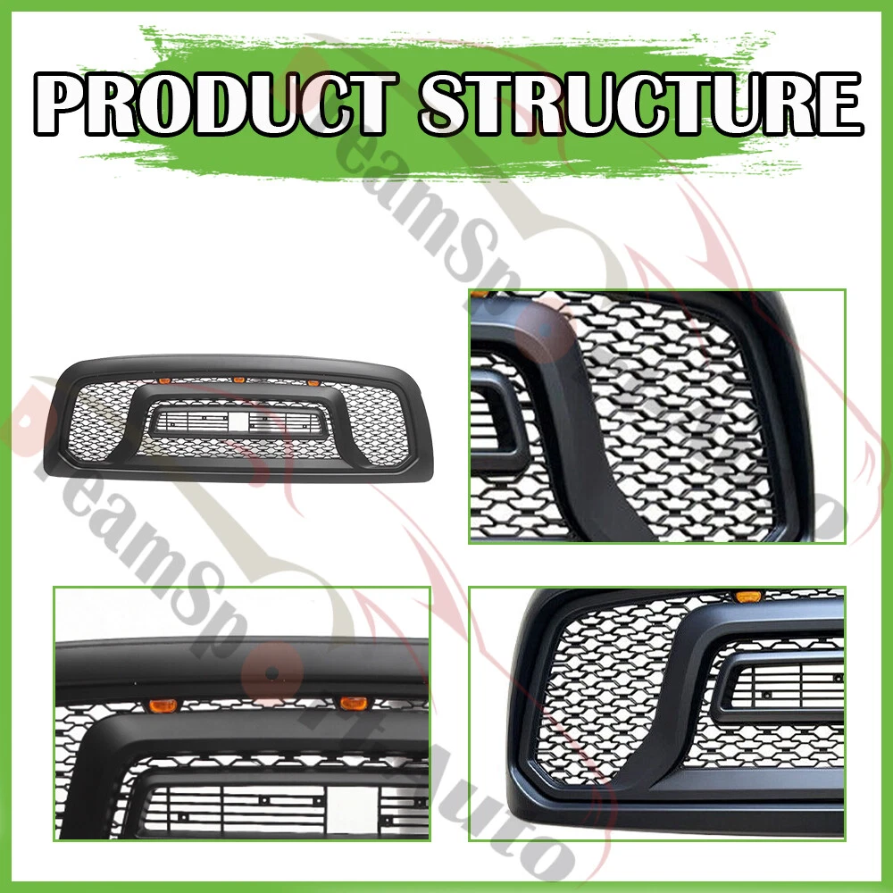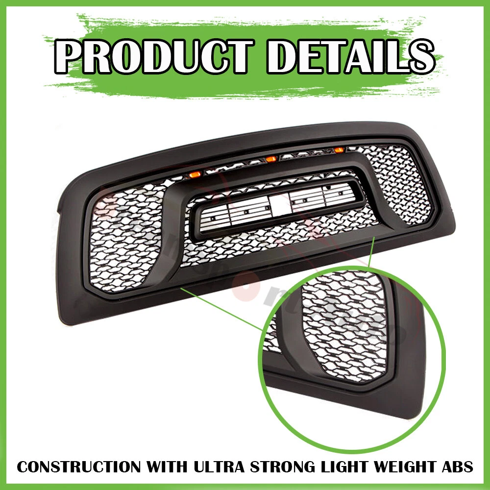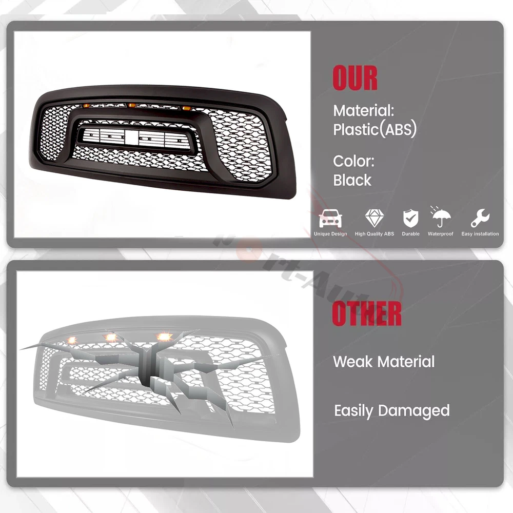Product Description Front Grille for 2009-2012 Dodge Ram 1500 Accessories Black w/Letters LED Grill (With all letters & Ships with 1 working day after payment ) Stock in US and will be shipped out in two business days(mostly in one weekday) from CA Led lights and letters include. Made of high quality ABS plastic with matte black finish. Any question,please contact with us. FEATURE This Grille not only adds great styling to the front end of your RAM, but it will also increase airflow across the radiator - when compared to the stock grille. This additional air helps to improve engine cooling, which in turn improves performance. Simple Straight Forward Installation. There is no cutting or modifications required for a clean straightforward installation. Installation can be completed in about 1 hour with just basic hand tools. FITMENT: For 2009 2010 2011 2012 Dodge Ram 1500 PACKAGE INCLUDE: 1x Grille 3X Letters R/A/M 3x Amber LED Lights 1x Wiring Harness ! Note: 1. If You Can't Make Sure It's Will Fit Or Not Please Send Us You Model Car Photos. Thanks !!! 2. Customer satisfaction is our number one priority. Please contact us to resolve any problem before leaving neutral or negative feedback. 3. Please check compatibility table, item specifics, part numbers as well as the product description to ensure this is the correct part for your vehicle. 4. Instruction not included. Professional installation is always recommended. 5. Any damaged products due to non-professional or user error may not be returned for refund. About US payment Shipping Return Contact US *Have any questions,please send us a message and we will help you solve them. *Please do not open the return and dispute at will. Once it is opened, it will affect our view of the specific information of the order, which is inconvenient for us to solve the problem. * If you receive the goods and are satisfied , please give us a good comment, we will give you a good comment; *Do not feel free to give bad reviews, because bad reviews can not solve the problem, only contact us to let us know what problems you encounter, we can help you solve. Thank you. * We specialize in aftermarket performance parts and accessories. Our goal is to strive for the highest level of customer service to ensure the satisfaction of all our customers. * We work hard with our suppliers to find the best products, at the lowest prices from brands that you know and trust. * We have contracts in place with major shipping providers to help ship and deliver our products to the consumer fast and efficiently. Our average processing / handling time is less than 24 hours and about 95% of our shipments arrive earlier than the expected arrival dates. Based on eBay new policy,We accept payment by PayPal only. PayPal enables you to send payment quickly and securely online.We do not accept other payment methods. 1、Tracking number will be emailed to you once we have shipped your order.If there is any delay,it may be caused by bad weather or custom inspection.If you still can not receive the item with in 7 Days,please contact us.You can track your parcel on the following website using your tracking number: 17track (Copied to the browser to open) 2、We try our best to make you get desired products as soon as possible.In case you receive wrong products due to shipping error,please contact us for exchange or refund.If it is damaged,please refuse to acceot and contact us as soon as possible. 3、We are not responsible for wrong or undeliverable address.Please provide us your full address with Telephone number and make sure your shipping address is correct and deliverable.If you need to change your address,please change it in PayPal first before you pay. 30 Days Return & Exchange Policy: * We give you a 30 days money-back guarantee to return any items purchased, no questions asked, hassle-free. * You can return for refund or exchange same product or different product (difference of price will be charged) within 30 days after you receive the item. * Any returning or exchanging items must be in the original package and new condition. We reserve rights to refuse refit or damaged items (caused by buyer) for return and exchange. * No returns will be accepted if you contacted us after 30 days of receiving the item. * Return fee: Buyers are responsible to pay the return shipping fee. 15% restocking fee on total price will be charged and be deducted from the refund total. * Exchange fee: No restocking fee will be charged, however Buyers are responsible to pay the return shipping fee and exchange reshipping fee , depending on the weight of merchandise. * Email our Customer Service Department first before return the item back . Please specify your item number, your eBay ID, and the reason for the return. 60 Days Warranty Policy * Defective Return & Exchange : To help process this faster, please provide detailed description explaining the problem and attach photos of damaged products as well. If we authorize the return, you will be receiving an email with instructions on the return. * We give you a 60 days warranty to exchange any defective items. Within 3 days after you receive the item, Pre-paid return label or shipping fee will be provided if it is necessary. After 3 days, buyers are responsible to pay the return shipping fee to send item back to us. We will cover the replacement shipping fee. Defective products only can be exchanged for the exact same product within 60 days after the date of sale. No exchange will be accepted if you contacted us after 60 days of receiving the item. 1.Huge selections of car parts for you. Best quality with factory price. 2.Please contact us if you have any questions. About US *Have any questions,please send us a message and we will help you solve them. *Please do not open the return and dispute at will. Once it is opened, it will affect our view of the specific information of the order, which is inconvenient for us to solve the problem. * If you receive the good