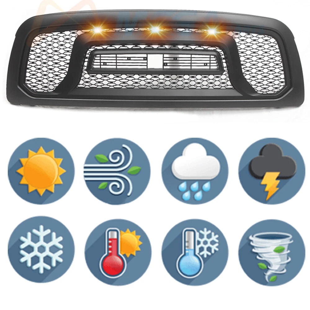 Product Description Front Grille for 2009-2012 Dodge Ram 1500 Black Grill w/Letters LED Paintable (With all letters & Ships with 1 working day after payment ) Stock in US and will be shipped out in two business days(mostly in one weekday) from CA Led lights and letters include. Made of high quality ABS plastic with matte black finish. Any question,please contact with us. FEATURE This Grille not only adds great styling to the front end of your RAM, but it will also increase airflow across the radiator - when compared to the stock grille. This additional air helps to improve engine cooling, which in turn improves performance. Simple Straight Forward Installation. There is no cutting or modifications required for a clean straightforward installation. Installation can be completed in about 1 hour with just basic hand tools. FITMENT: For 2009 2010 2011 2012 Dodge Ram 1500 PACKAGE INCLUDE: 1x Grille 3X Letters R/A/M 3x Amber LED Lights 1x Wiring Harness ! Note: 1. If You Can't Make Sure It's Will Fit Or Not Please Send Us You Model Car Photos. Thanks !!! 2. Customer satisfaction is our number one priority. Please contact us to resolve any problem before leaving neutral or negative feedback. 3. Please check compatibility table, item specifics, part numbers as well as the product description to ensure this is the correct part for your vehicle. 4. Instruction not included. Professional installation is always recommended. 5. Any damaged products due to non-professional or user error may not be returned for refund. About US payment Shipping Return Contact US *Have any questions,please send us a message and we will help you solve them. *Please do not open the return and dispute at will. Once it is opened, it will affect our view of the specific information of the order, which is inconvenient for us to solve the problem. * If you receive the goods and are satisfied , please give us a good comment, we will give you a good comment; *Do not feel free to give bad reviews, because bad reviews can not solve the problem, only contact us to let us know what problems you encounter, we can help you solve. Thank you. * We specialize in aftermarket performance parts and accessories. Our goal is to strive for the highest level of customer service to ensure the satisfaction of all our customers. * We work hard with our suppliers to find the best products, at the lowest prices from brands that you know and trust. * We have contracts in place with major shipping providers to help ship and deliver our products to the consumer fast and efficiently. Our average processing / handling time is less than 24 hours and about 95% of our shipments arrive earlier than the expected arrival dates. Based on eBay new policy,We accept payment by PayPal only. PayPal enables you to send payment quickly and securely online.We do not accept other payment methods. 1、Tracking number will be emailed to you once we have shipped your order.If there is any delay,it may be caused by bad weather or custom inspection.If you still can not receive the item with in 7 Days,please contact us.You can track your parcel on the following website using your tracking number: 17track (Copied to the browser to open) 2、We try our best to make you get desired products as soon as possible.In case you receive wrong products due to shipping error,please contact us for exchange or refund.If it is damaged,please refuse to acceot and contact us as soon as possible. 3、We are not responsible for wrong or undeliverable address.Please provide us your full address with Telephone number and make sure your shipping address is correct and deliverable.If you need to change your address,please change it in PayPal first before you pay. 30 Days Return & Exchange Policy: * We give you a 30 days money-back guarantee to return any items purchased, no questions asked, hassle-free. * You can return for refund or exchange same product or different product (difference of price will be charged) within 30 days after you receive the item. * Any returning or exchanging items must be in the original package and new condition. We reserve rights to refuse refit or damaged items (caused by buyer) for return and exchange. * No returns will be accepted if you contacted us after 30 days of receiving the item. * Return fee: Buyers are responsible to pay the return shipping fee. 15% restocking fee on total price will be charged and be deducted from the refund total. * Exchange fee: No restocking fee will be charged, however Buyers are responsible to pay the return shipping fee and exchange reshipping fee , depending on the weight of merchandise. * Email our Customer Service Department first before return the item back . Please specify your item number, your eBay ID, and the reason for the return. 60 Days Warranty Policy * Defective Return & Exchange : To help process this faster, please provide detailed description explaining the problem and attach photos of damaged products as well. If we authorize the return, you will be receiving an email with instructions on the return. * We give you a 60 days warranty to exchange any defective items. Within 3 days after you receive the item, Pre-paid return label or shipping fee will be provided if it is necessary. After 3 days, buyers are responsible to pay the return shipping fee to send item back to us. We will cover the replacement shipping fee. Defective products only can be exchanged for the exact same product within 60 days after the date of sale. No exchange will be accepted if you contacted us after 60 days of receiving the item. 1.Huge selections of car parts for you. Best quality with factory price. 2.Please contact us if you have any questions. About US *Have any questions,please send us a message and we will help you solve them. *Please do not open the return and dispute at will. Once it is opened, it will affect our view of the specific information of the order, which is inconvenient for us to solve the problem. * If you receive the goods 