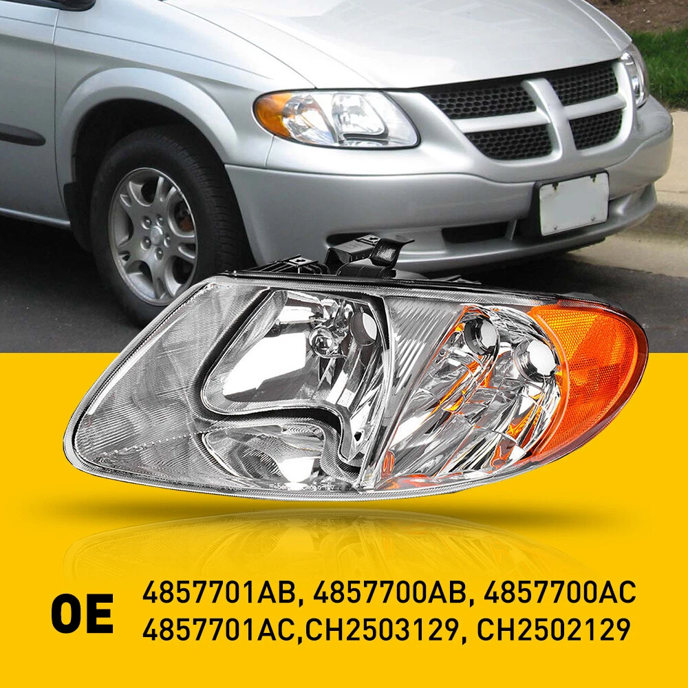 Features: Factory Headlights, Reflector Housing Bulbs Included: No Fitment Type: Direct Replacement Housing Color: Chrome (Crystal) Brand: AUXITO Type: Headlight Assembly Interchange Part Number: 4857701AC,4857700AC,4857701AB,4857700AB OE/OEM Part Number: 4857700AC, 4857701AC Lens Color: Clear Placement on Vehicle: Front, Left, Right UPC: Does Not Apply Manufacturer Warranty: 1 Year gtin13: Does Not Apply Other Part Number: CH2502129,CH2503129 Manufacturer Part Number: DDZC-Caravan-01-07-CA Lighting Technology: Halogen