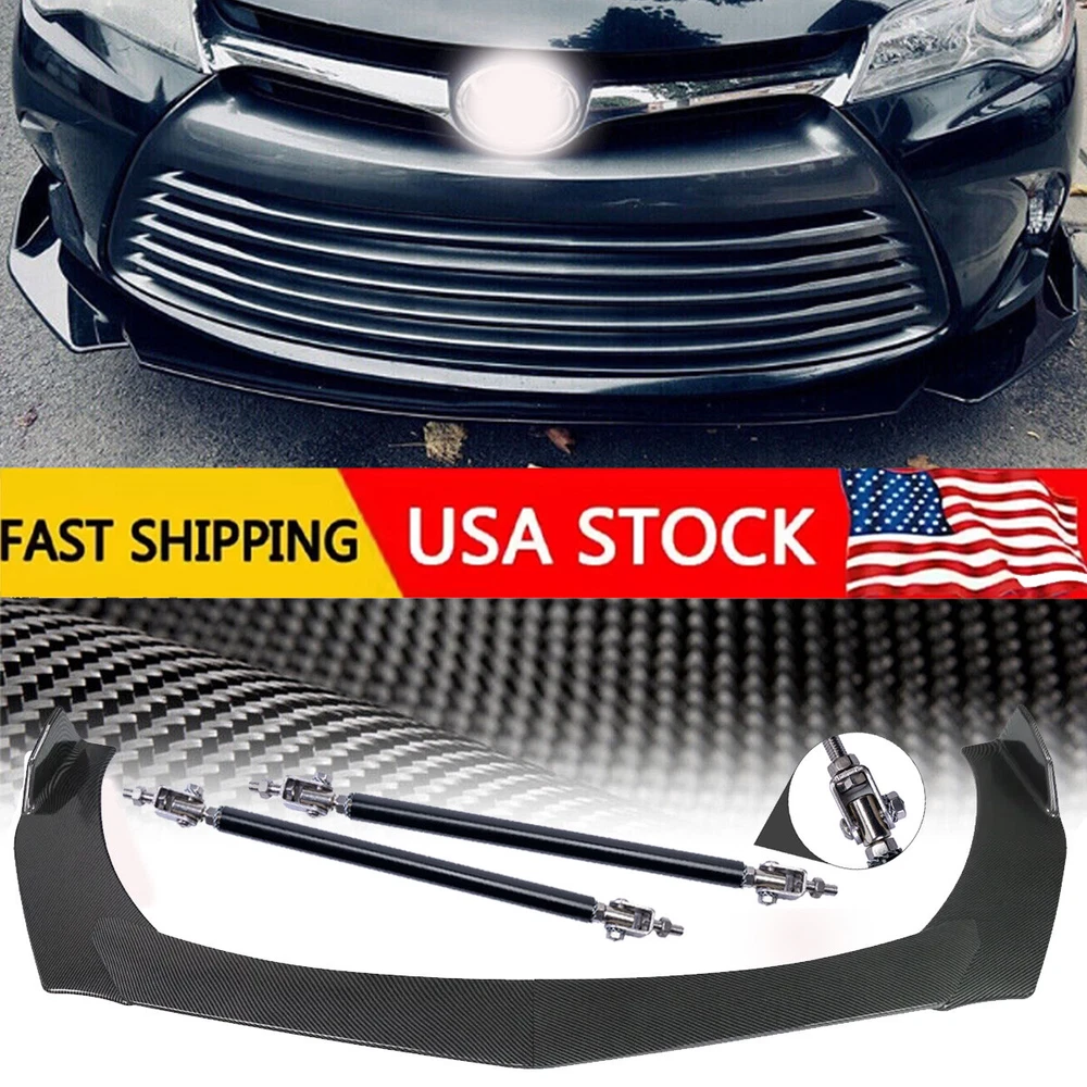 Front Lip Chin Bumper Specification: Condition: 100% Brand New Type: Front Lip Chin Bumper Body Kits Material: Made of high quality PP plastic, Durable Color: Carbon Fiber Look Placement on Vehicle: Front ; Lower Features: Double layer with shaped carbon fiber Give your vehicles sporty appearance Protect Your Bumper From Scratching Strict quality control standards to Build and test. Come With Screws, Pre-drilled holes for quick installation Professional Installation Is Highly Recommended. Strut Rods ★ Length: The length can be adjustable from 6" to 11" (150-275mm) ★ Material: Stainless Steel ★ Quatity: 2 x Stainless Steel Bumper Lip Splitter Tie Rod Bars. ( Stainless steel has weldability, corrosion resistance and heat resistance.) ★ Position: This exquisite and compact lever is mainly fixed on the body components (front and rear surround, skirt, head and tail lip), and can also be installed in the car center console or interior trim panel ★ Require: Product will require drilling holes into the bumper and/or lip/diffuser to attach safely to the vehicle. Package Includes: 1Set Front Lip Chin Bumper Body Kits(4pcs) 2 X Strut Splitter Rod